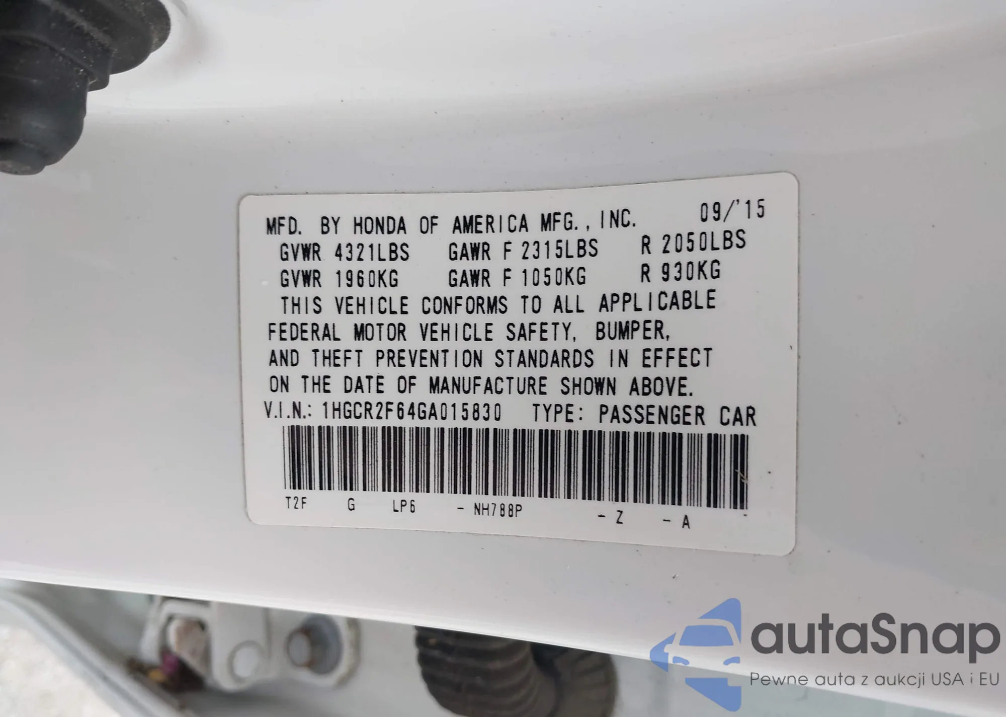 VIN: 1HGCR2F64GA015830