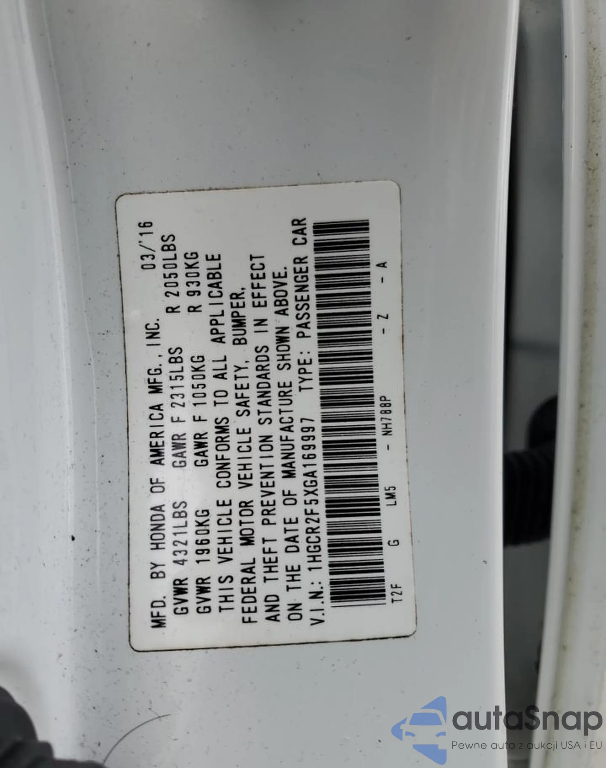 VIN: 1HGCR2F5XGA169997