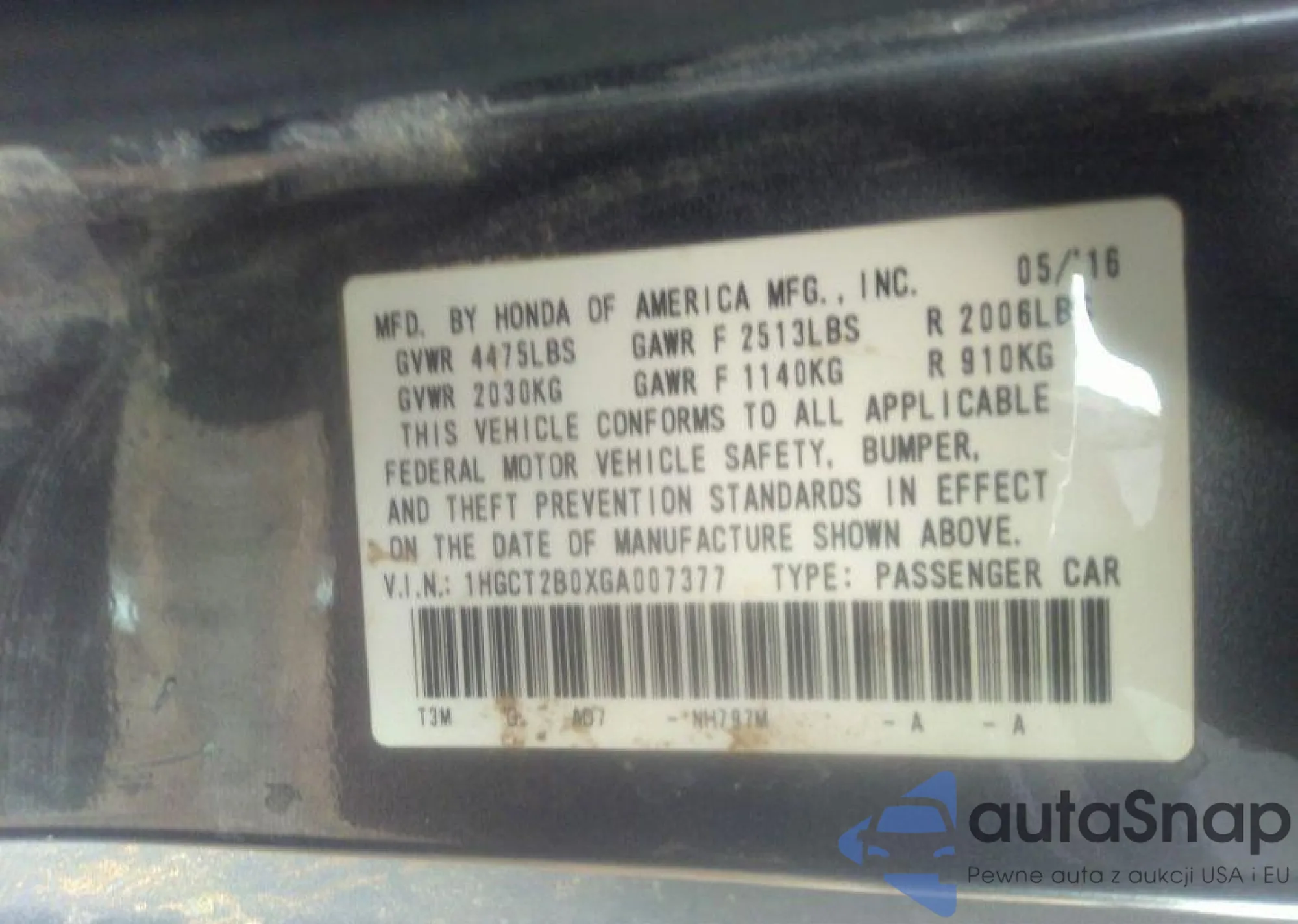 VIN: 1HGCT2B0XGA007377