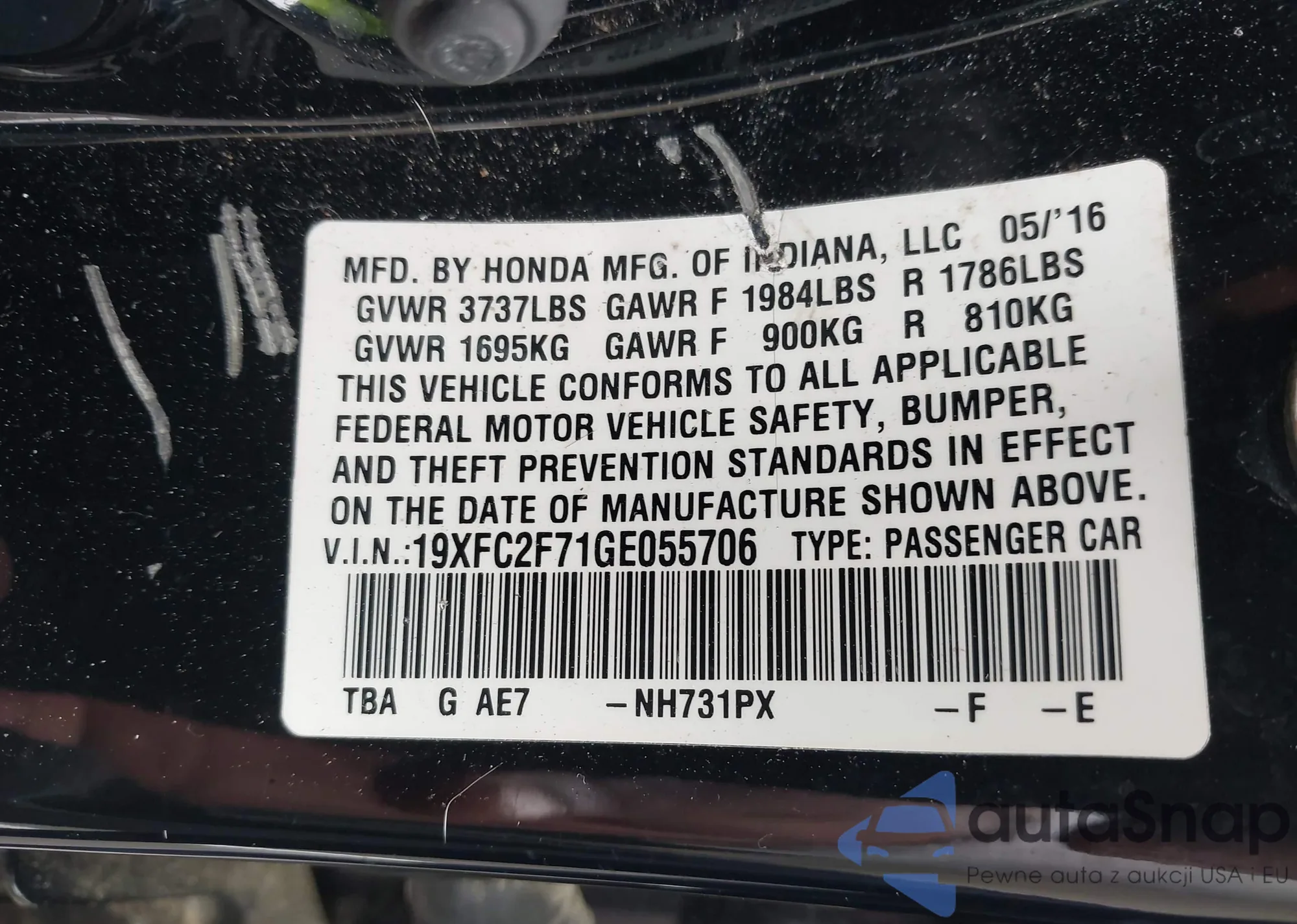 VIN: 19XFC2F71GE055706