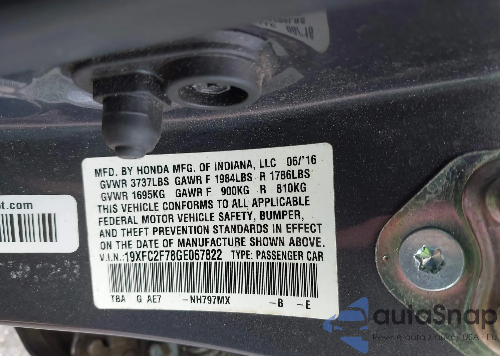 VIN: 19XFC2F78GE067822