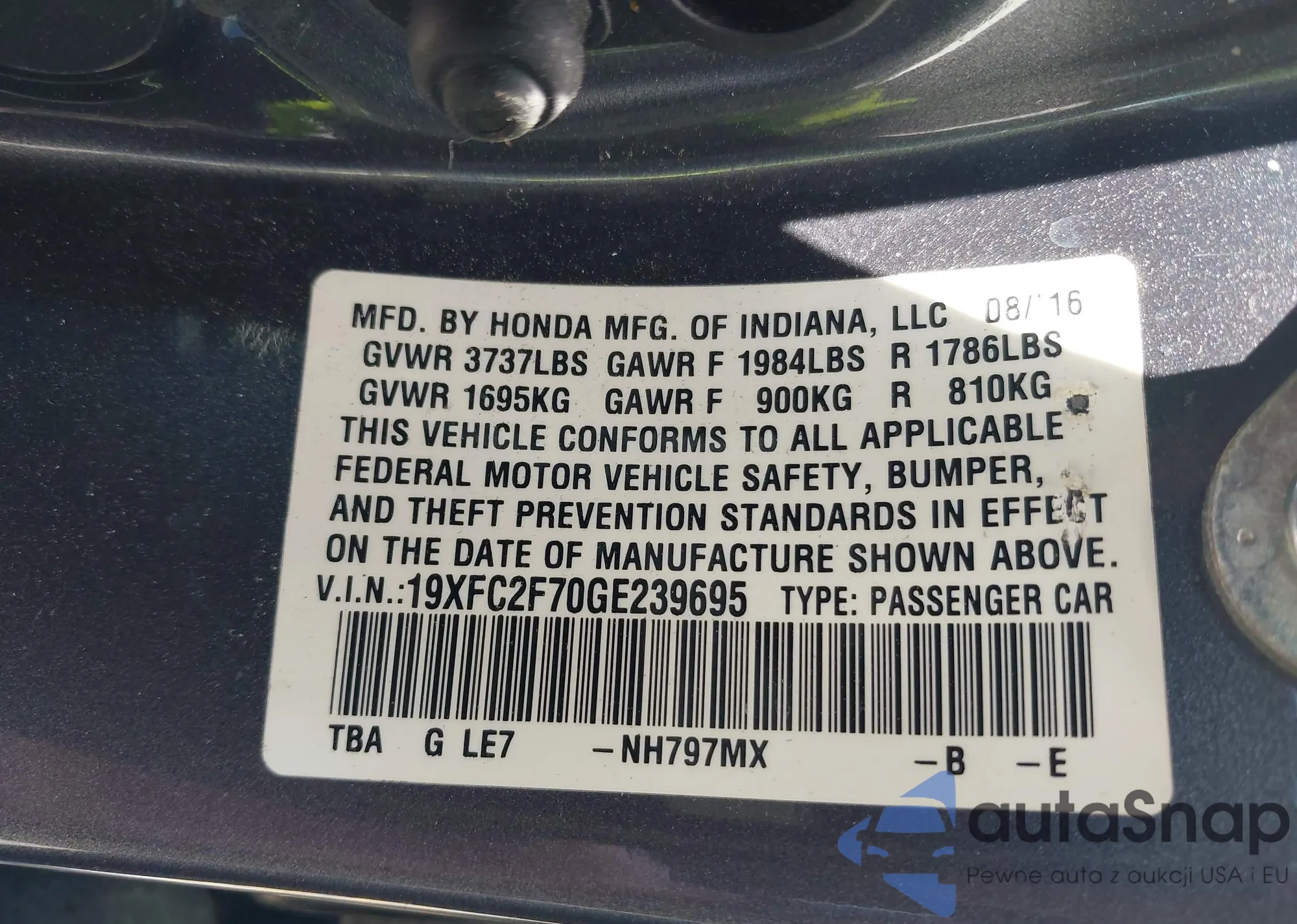 VIN: 19XFC2F70GE239695