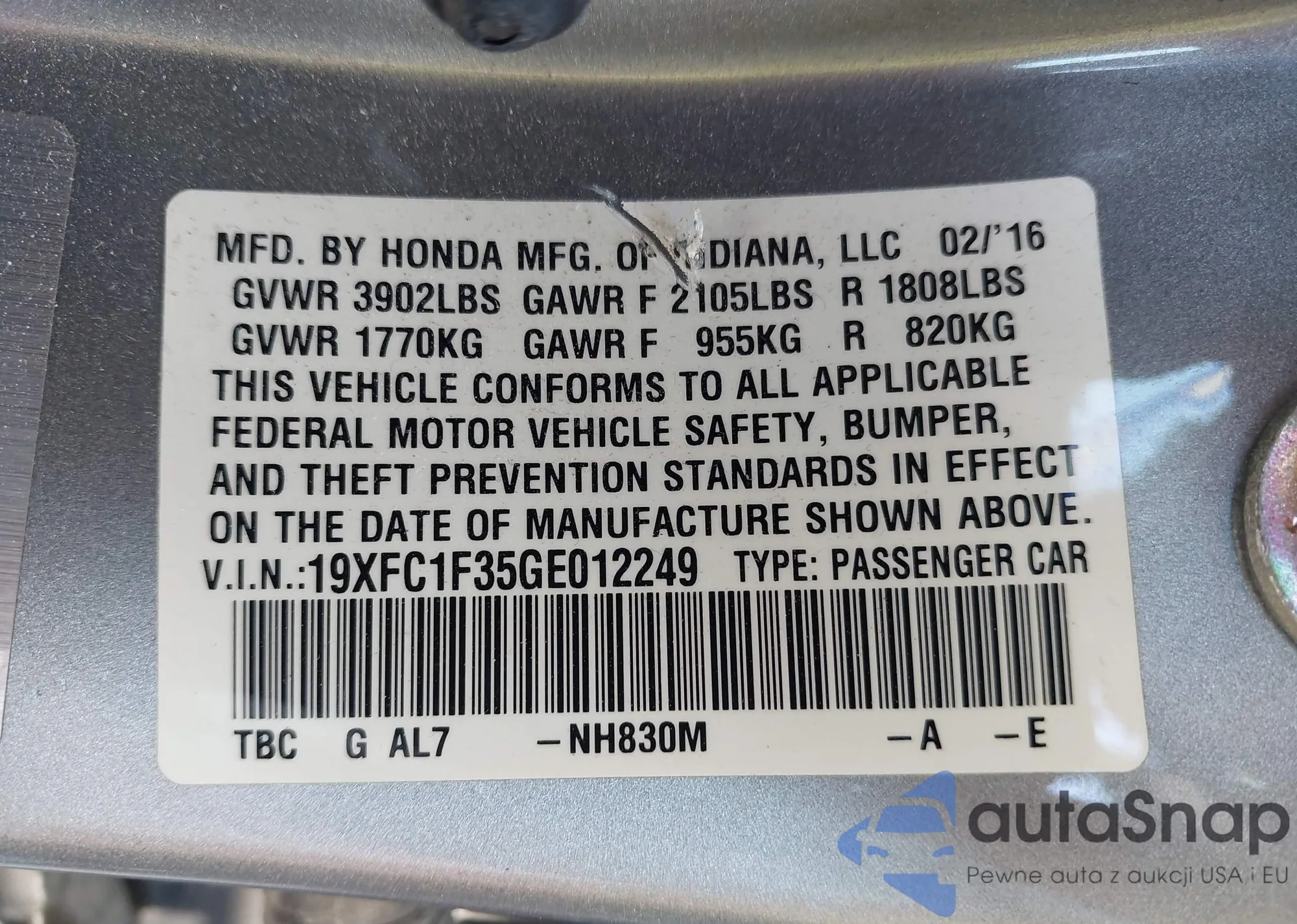 VIN: 19XFC1F35GE012249