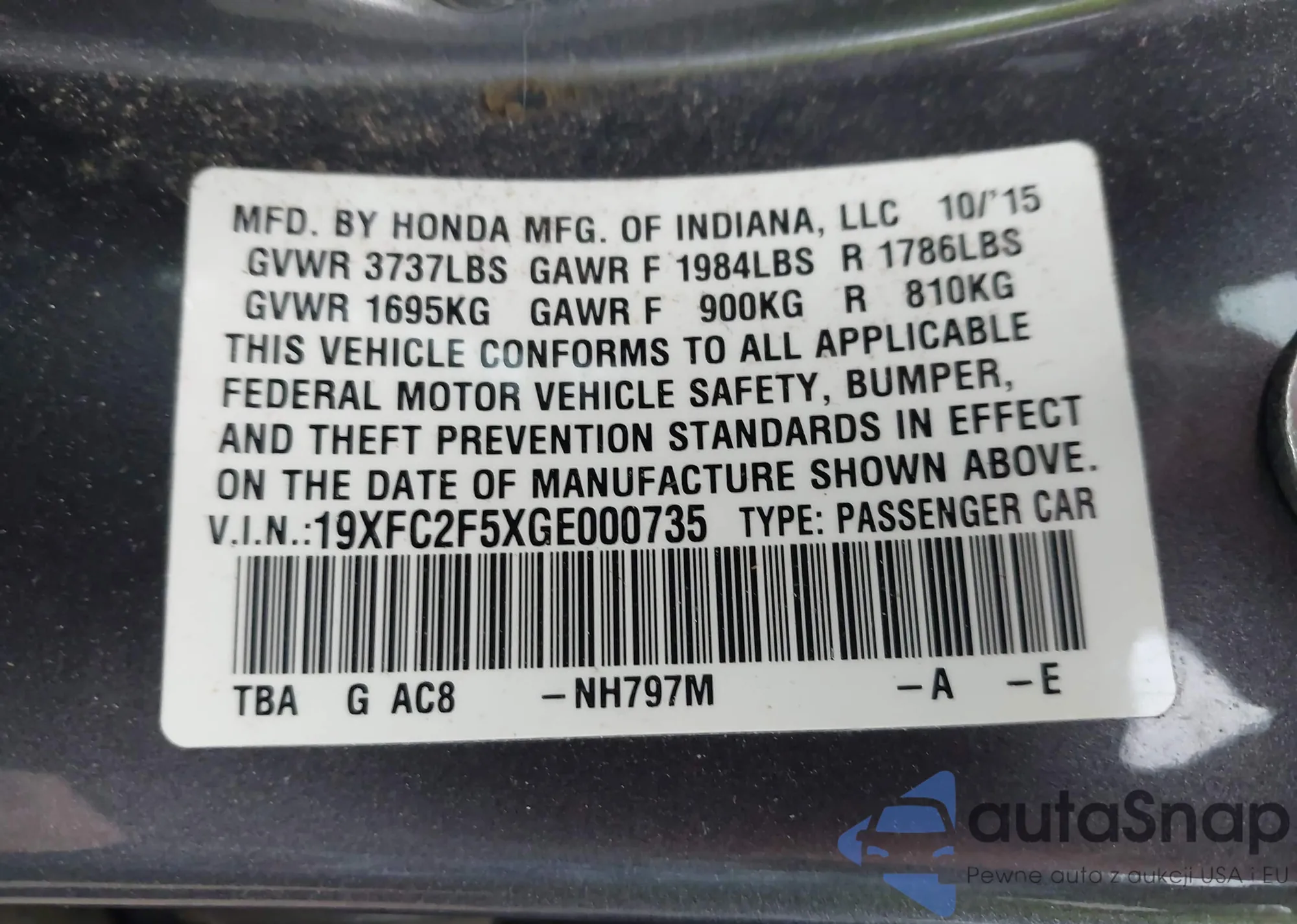 • VIN: 19XFC2F5XGE000735