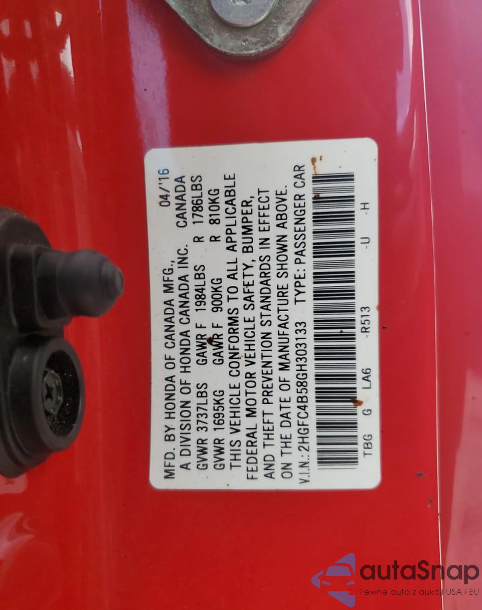 VIN: 2HGFC4B58GH303133