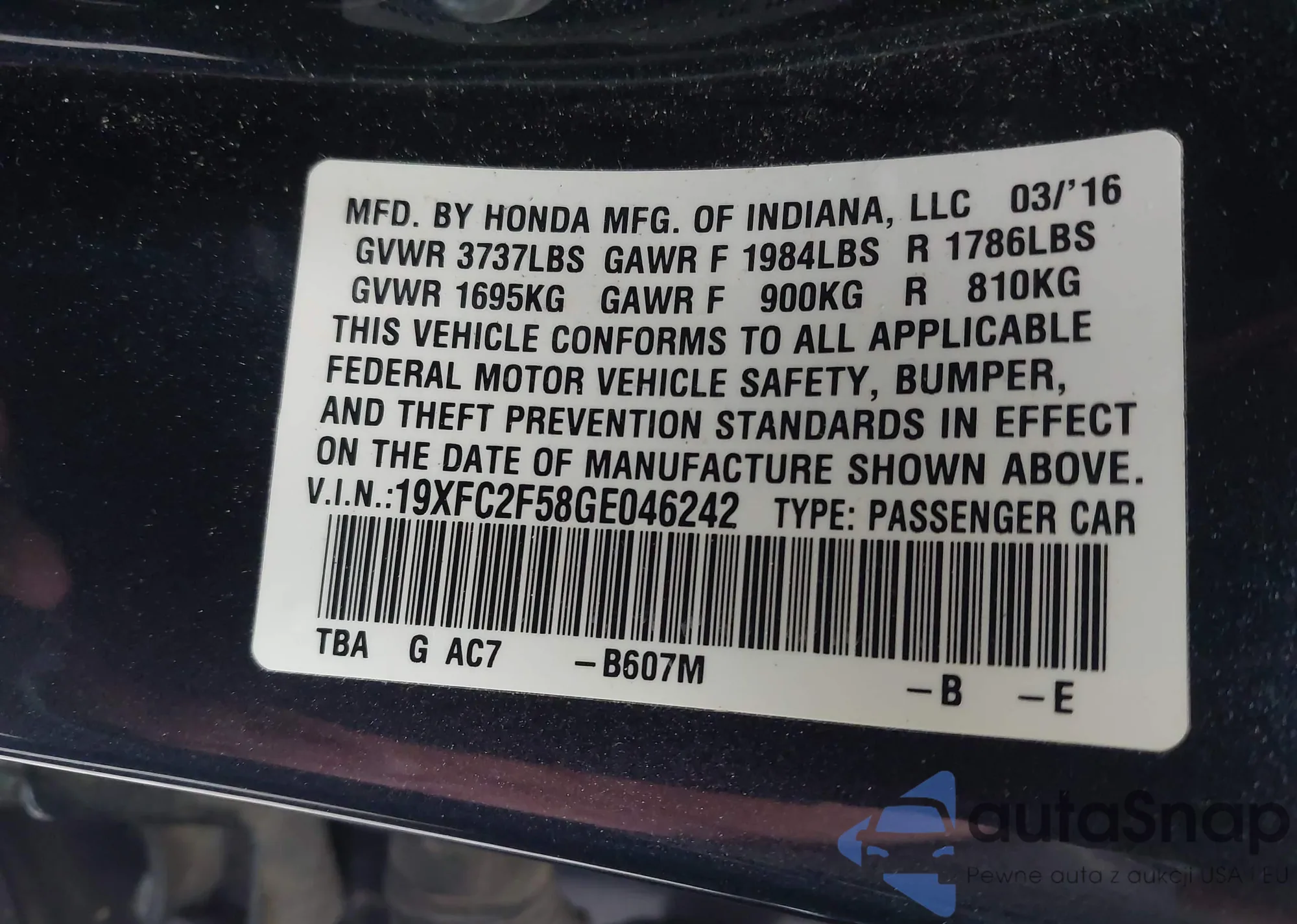 VIN: 19XFC2F58GE046242