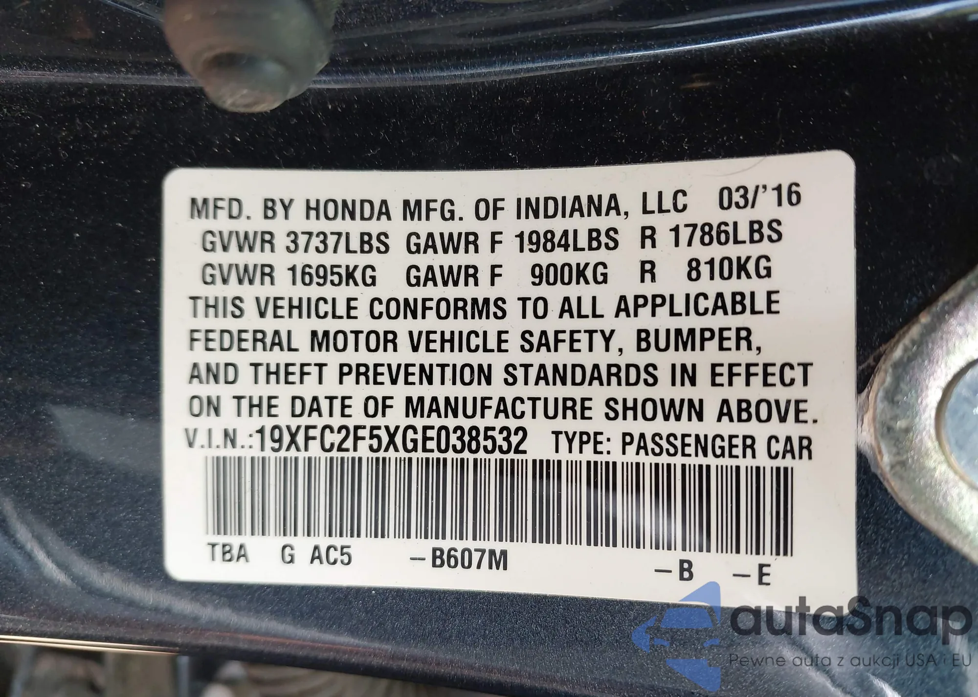 VIN: 19XFC2F5XGE038532