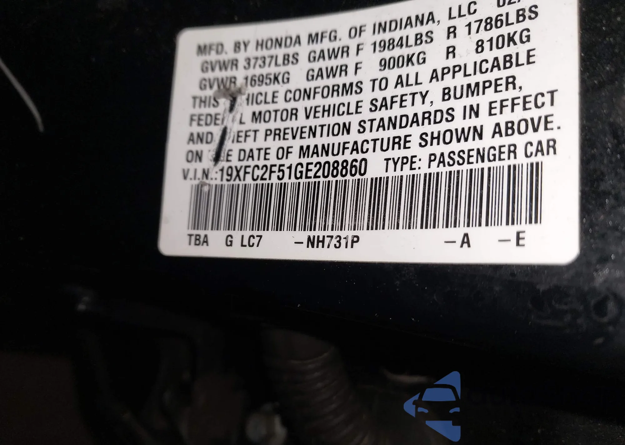 VIN: 19XFC2F51GE208860