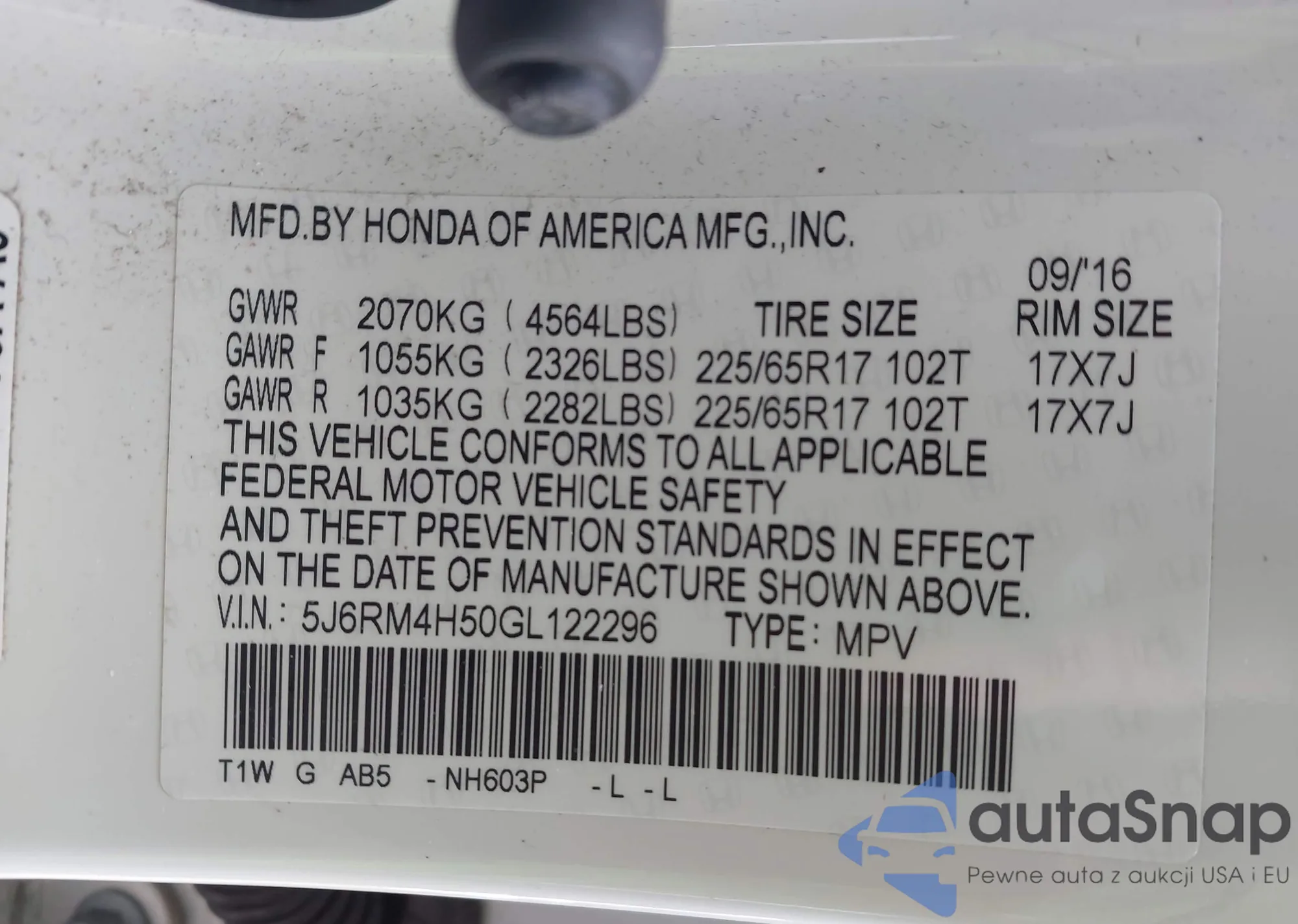 Samochód Honda CR-V 2016 (VIN 5J6RM4H50GL122296) nie był wcześniej licytowany. Dokumenty są czyste, przebieg odpowiada lub jest niższy niż średnia rynku. Sprzedaje go firma ubezpieczeniowa – polecamy zakup. Dostawa do portu zajmie ok. 6–8 tygodni.