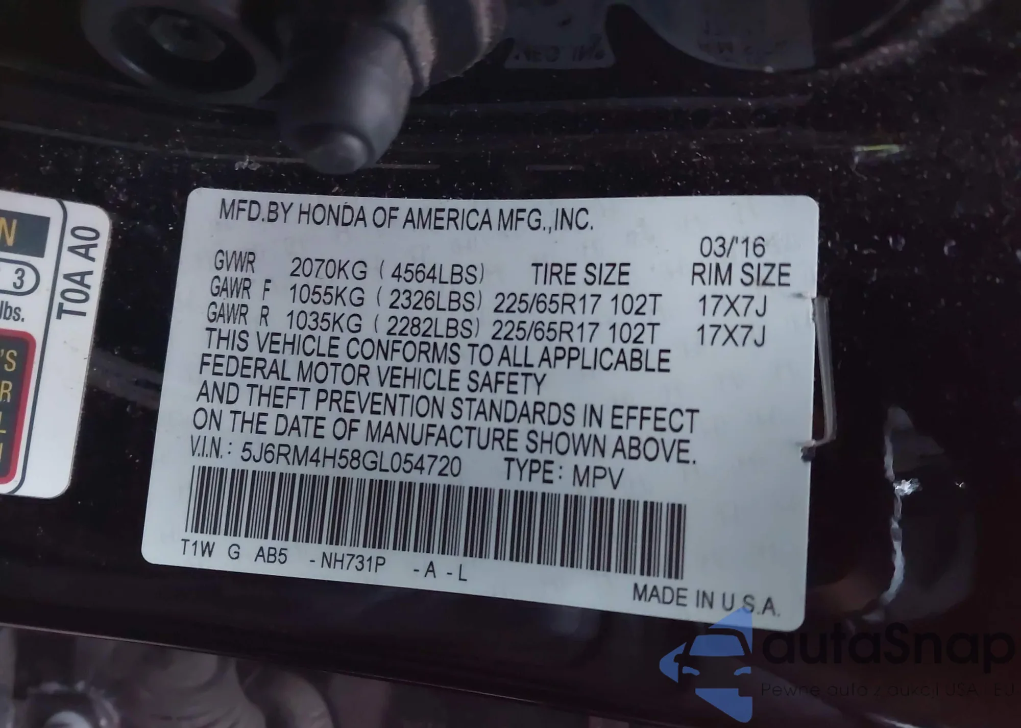 VIN: 5J6RM4H58GL054720