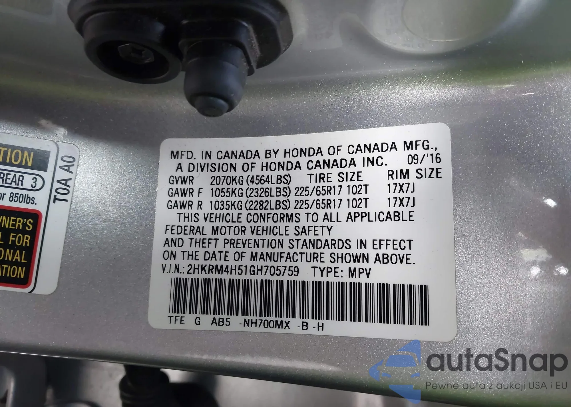 VIN: 2HKRM4H51GH705759