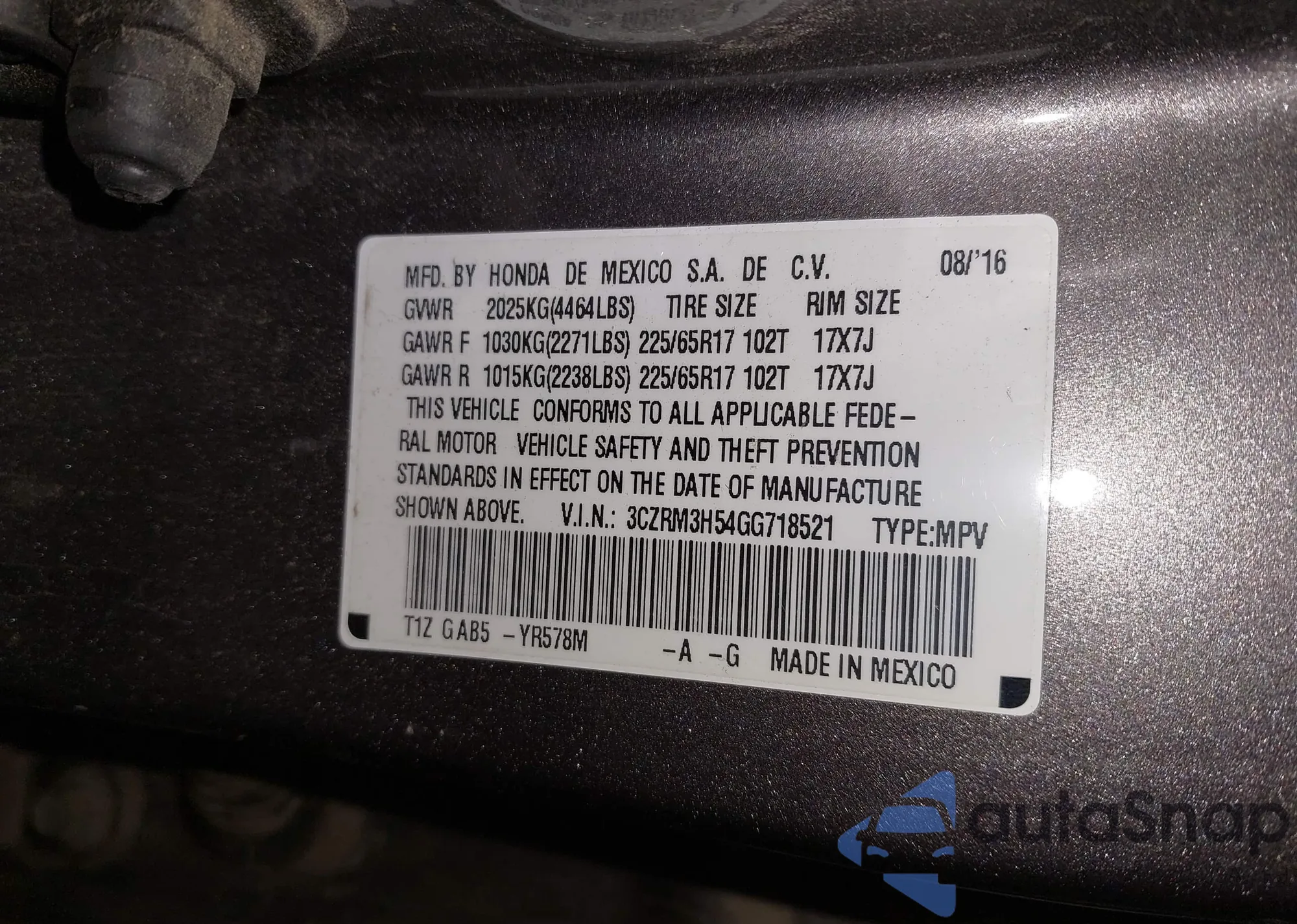 • VIN: 3CZRM3H54GG718521