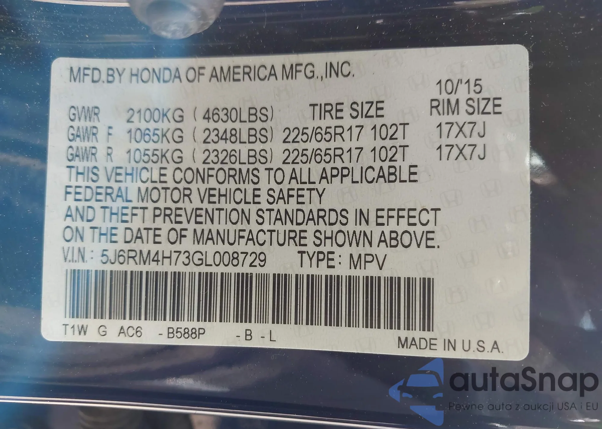 VIN: 5J6RM4H73GL008729