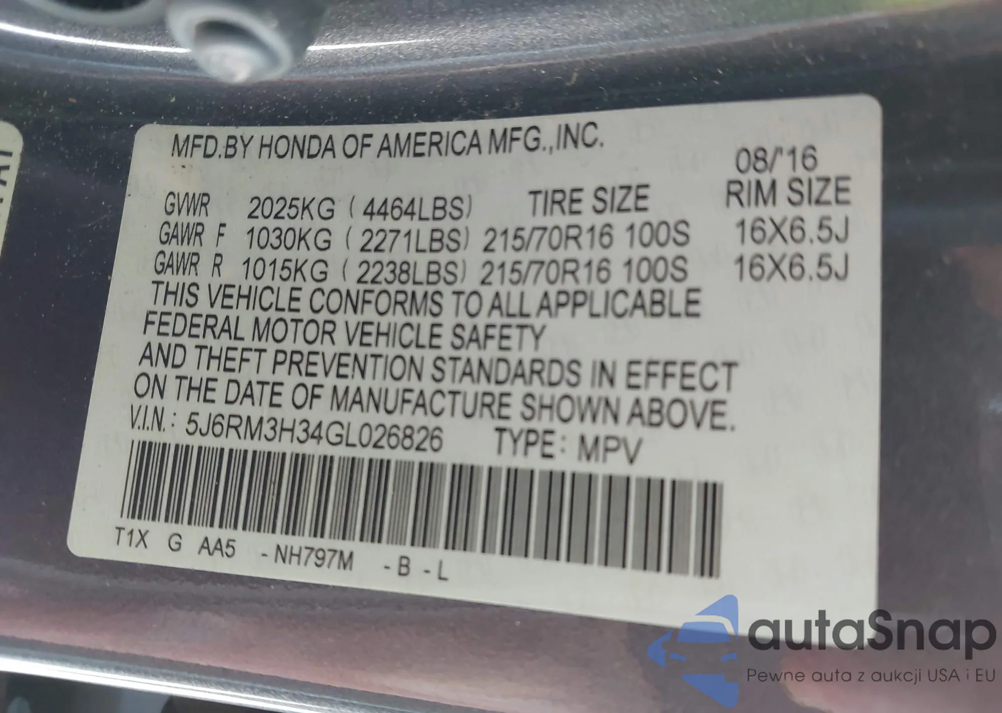 VIN: 5J6RM3H34GL026826
