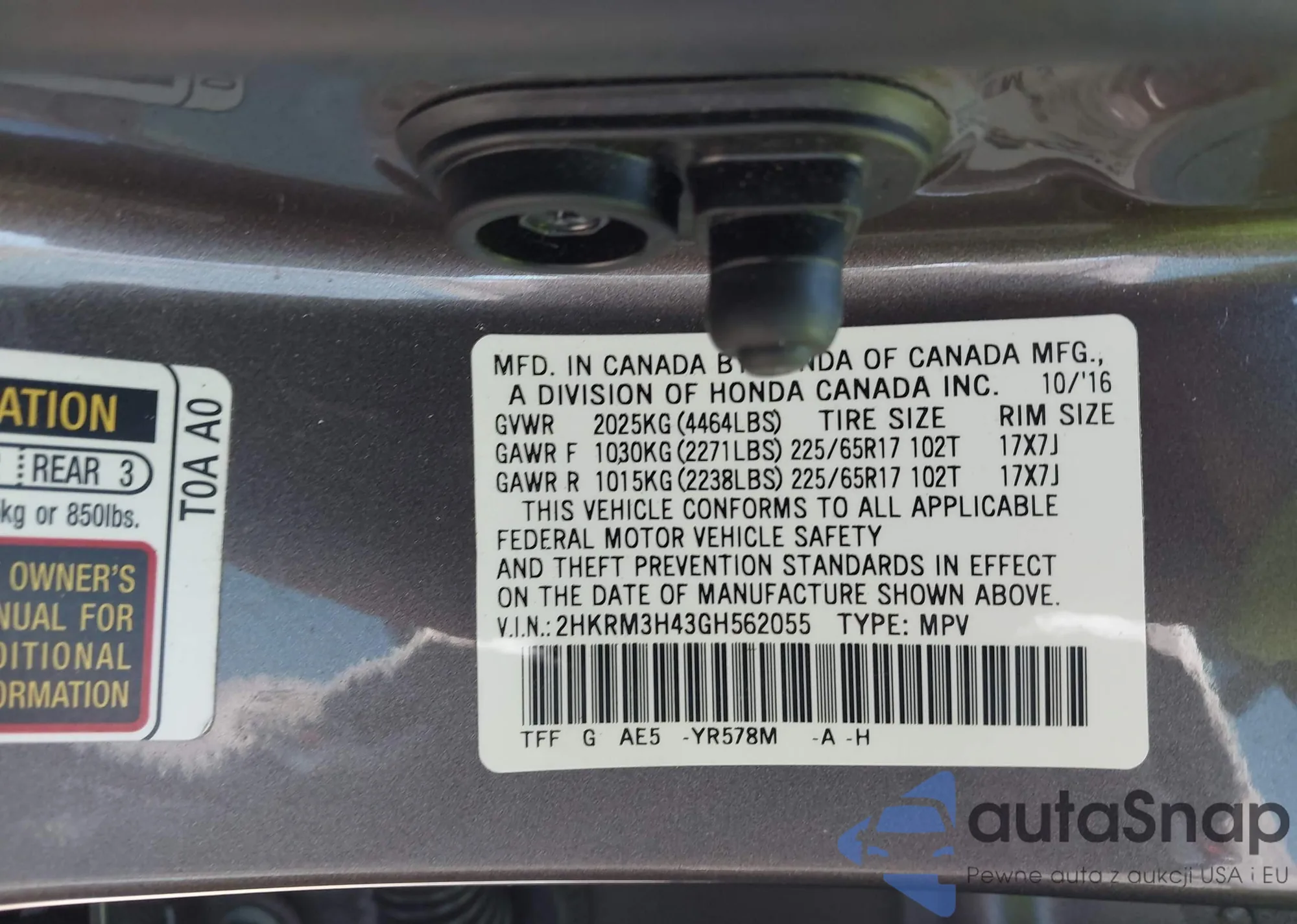 • VIN: 2HKRM3H43GH562055