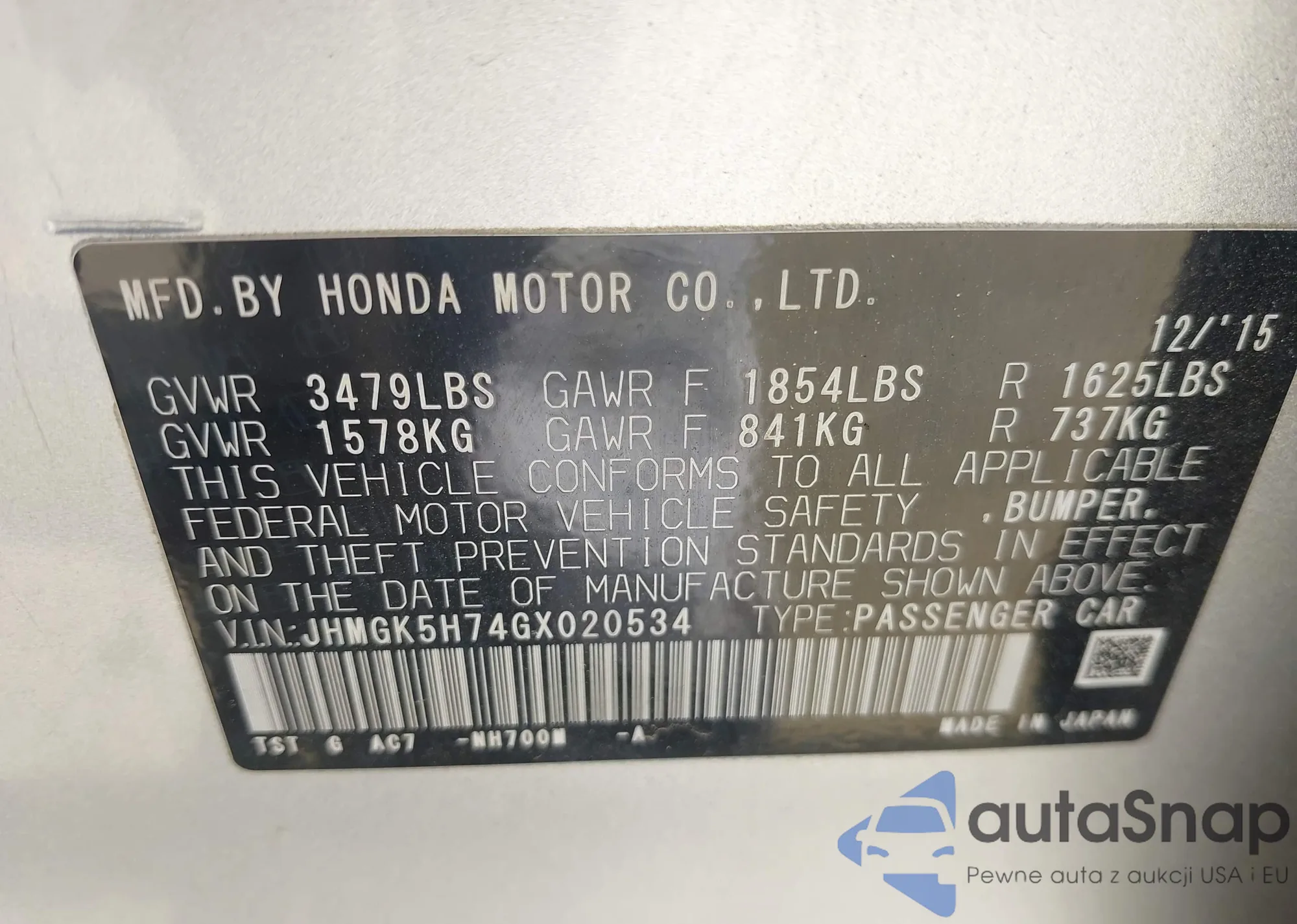 VIN: JHMGK5H74GX020534