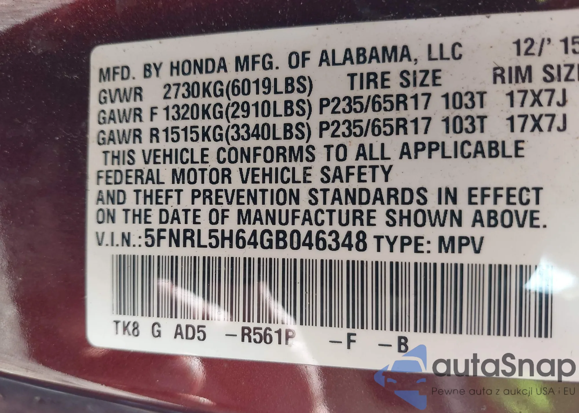 VIN: 5FNRL5H64GB046348