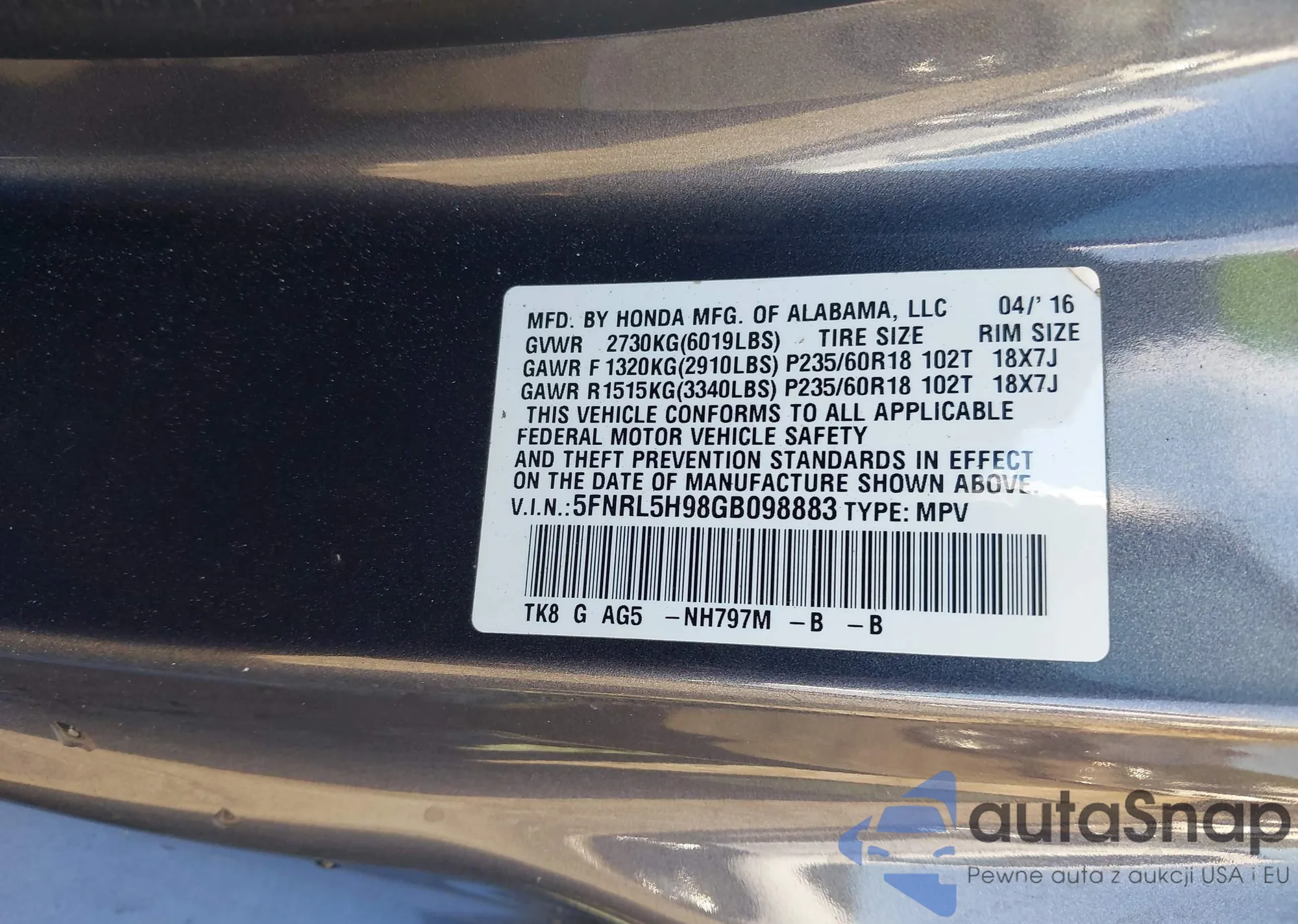 VIN: 5FNRL5H98GB098883