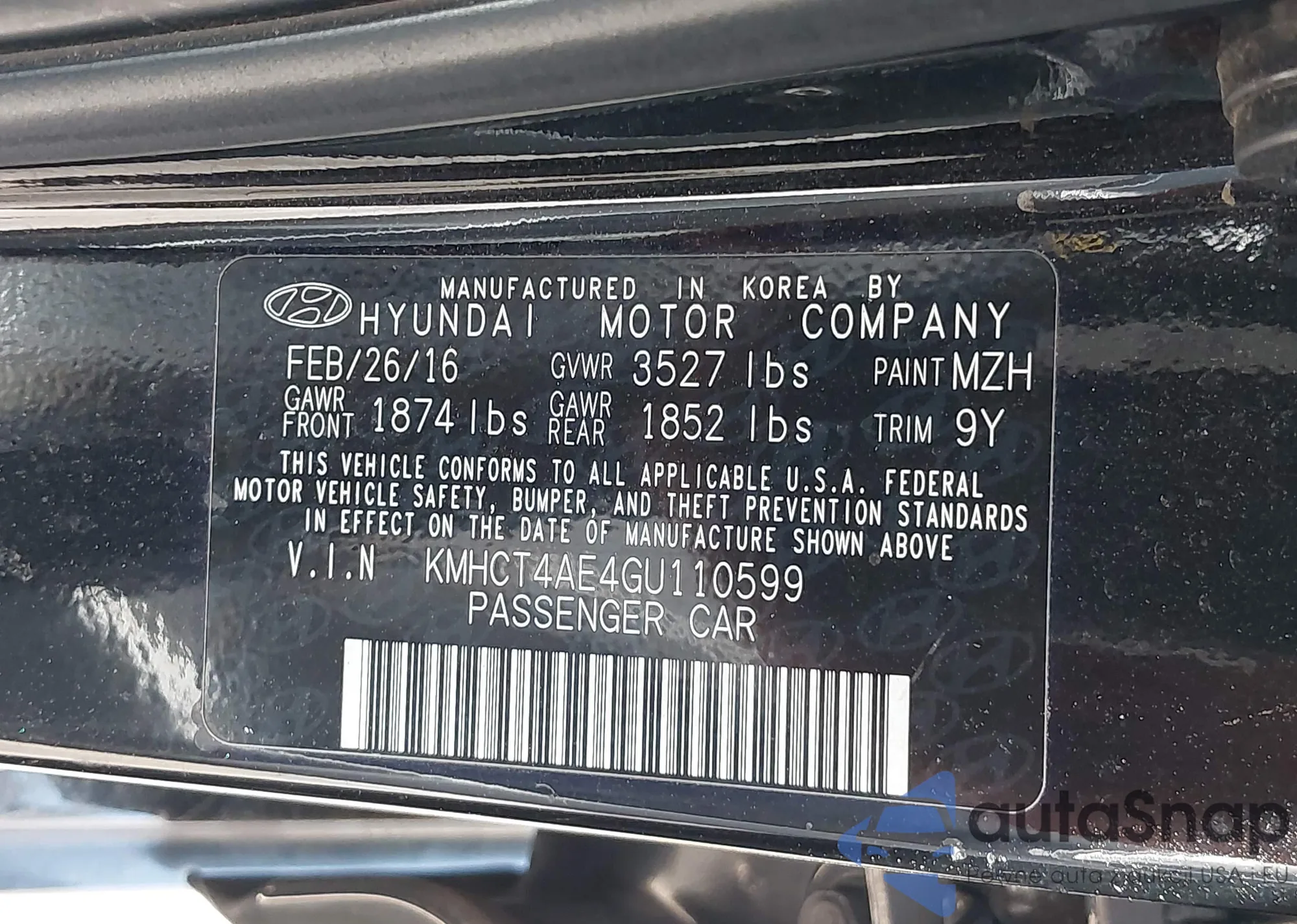 VIN: KMHCT4AE4GU110599