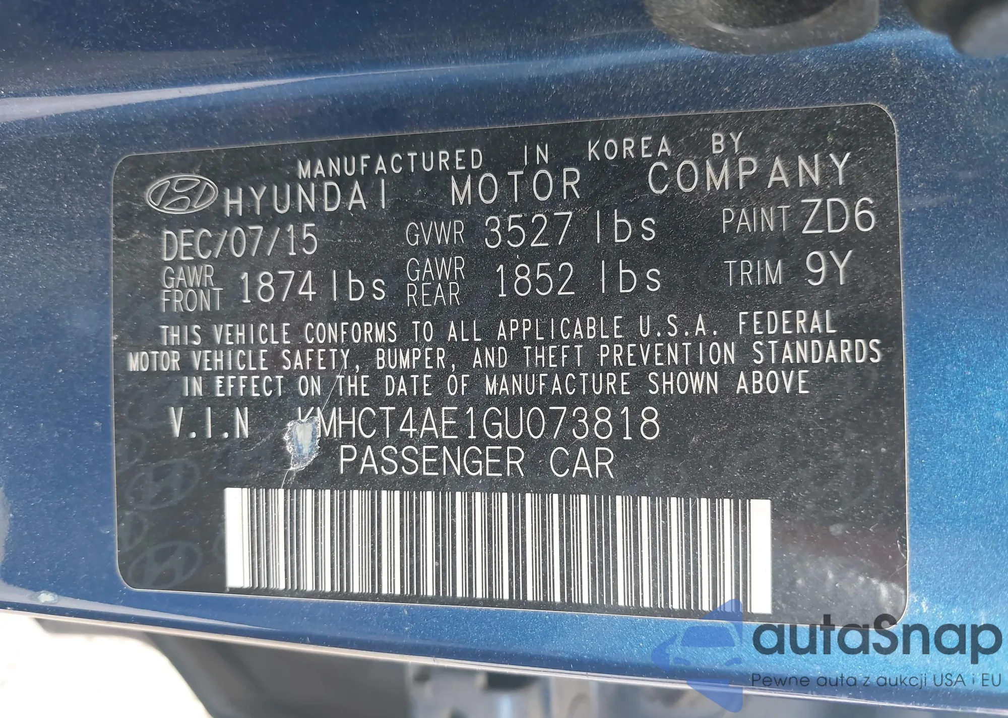 VIN: KMHCT4AE1GU073818