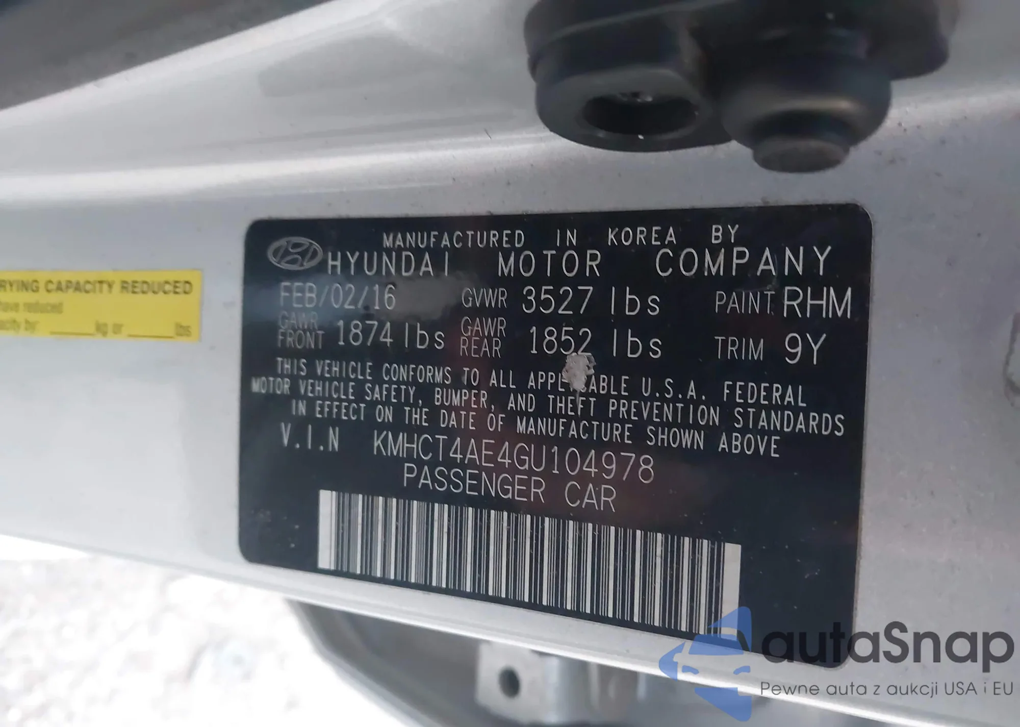 VIN: KMHCT4AE4GU104978