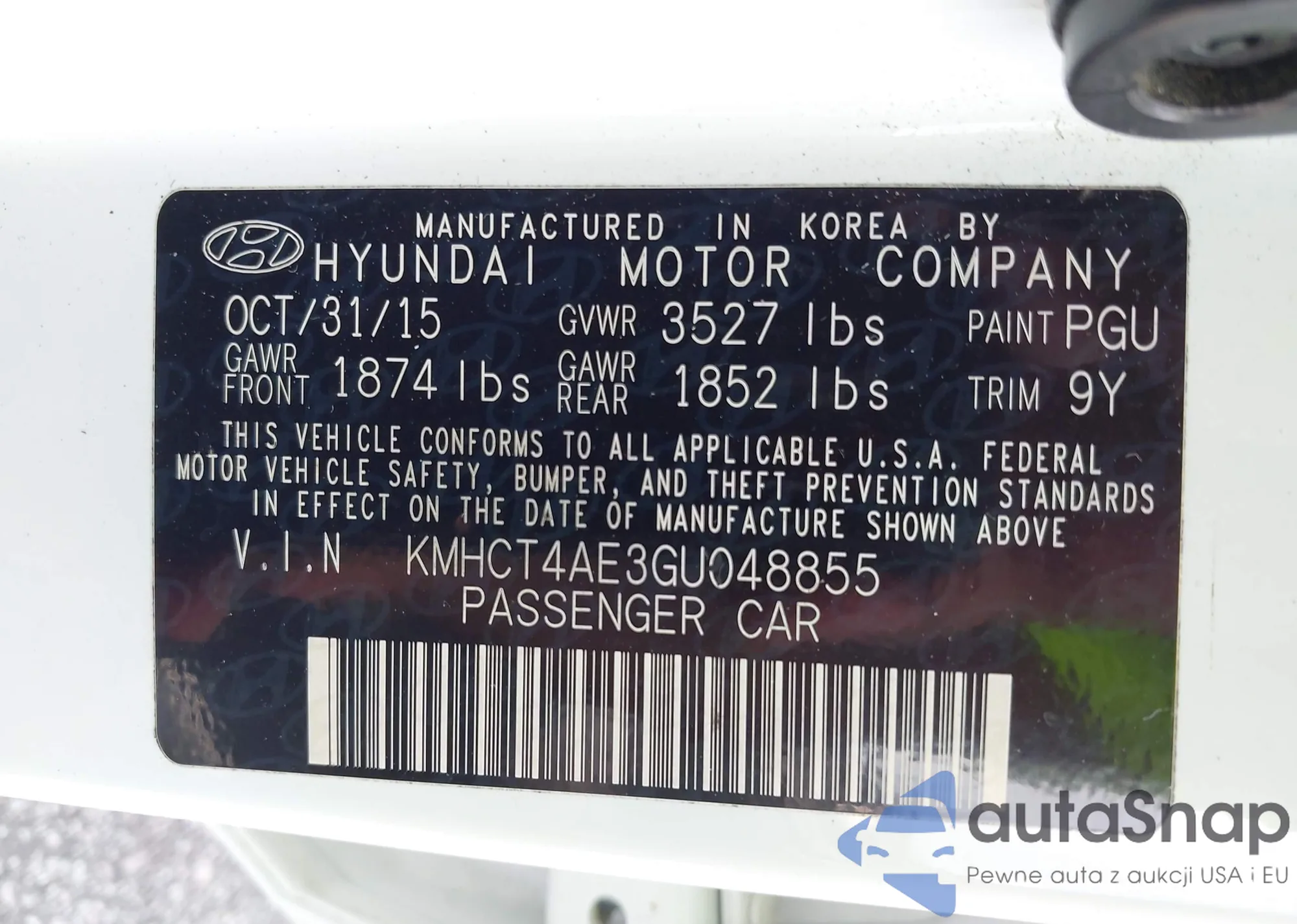 VIN: KMHCT4AE3GU048855