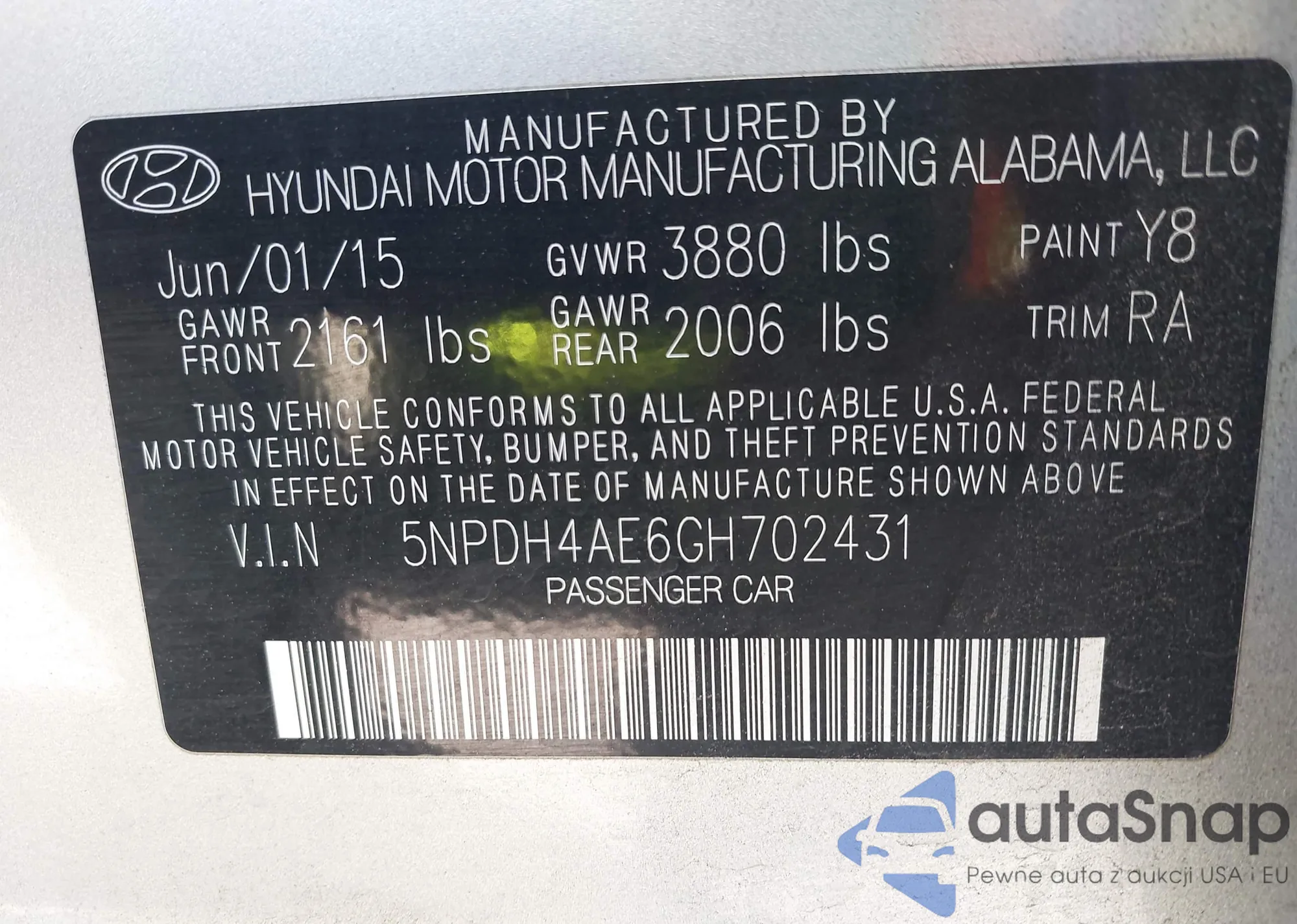 Samochód Hyundai Elantra 2016 (VIN 5NPDH4AE6GH702431) nie był wcześniej licytowany. Dokumenty są czyste, przebieg odpowiada lub jest niższy niż średnia rynku. Sprzedaje go firma ubezpieczeniowa – polecamy zakup. Dostawa do portu zajmie ok. 6–8 tygodni.