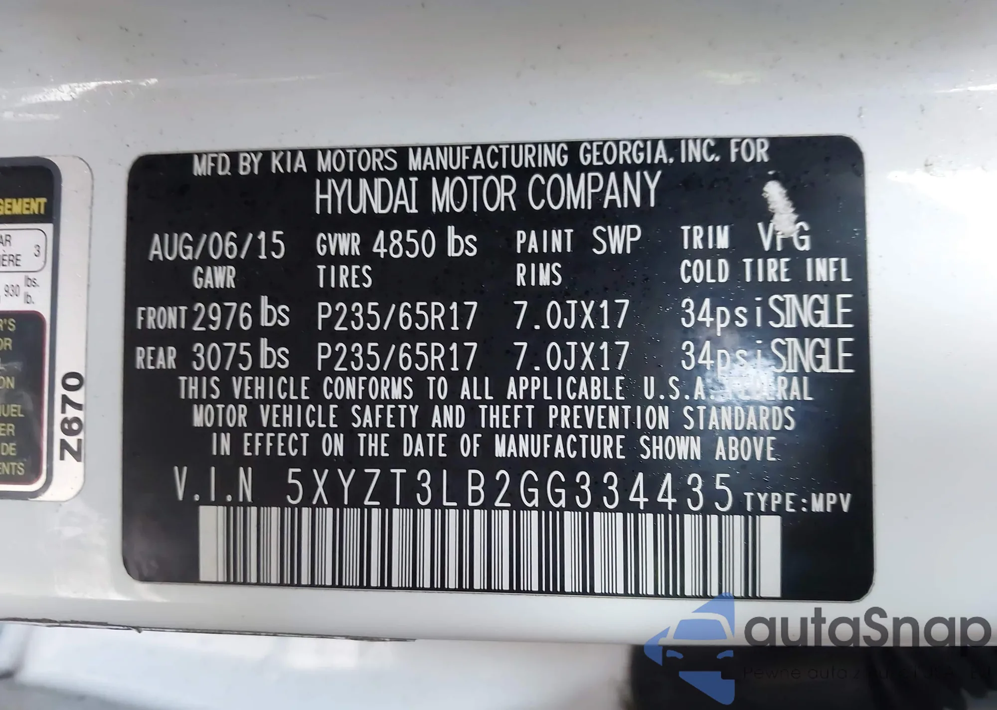 VIN: 5XYZT3LB2GG334435