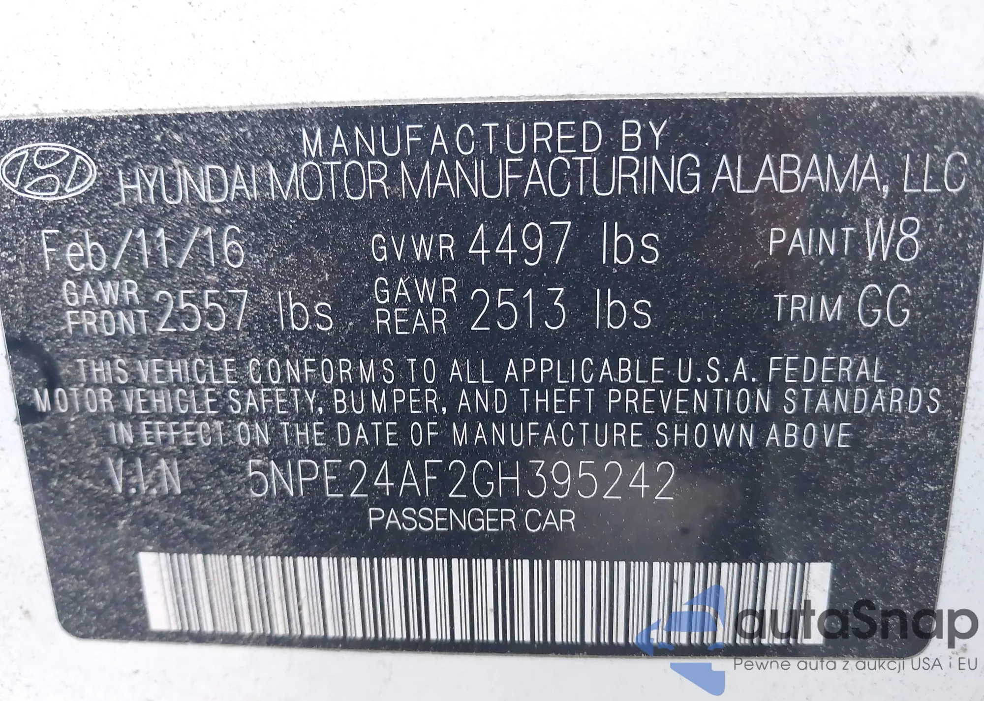 VIN: 5NPE24AF2GH395242