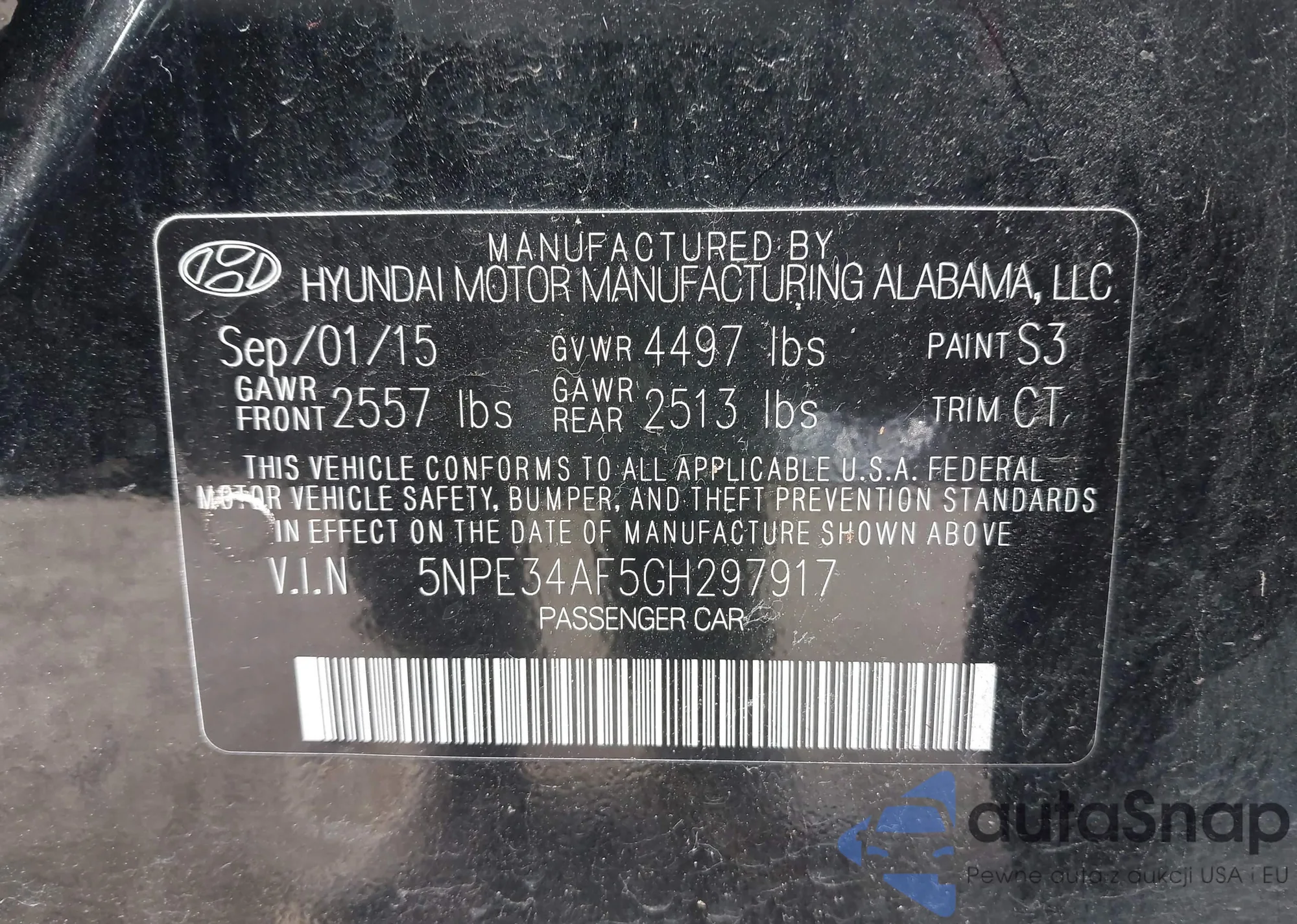 VIN: 5NPE34AF5GH297917