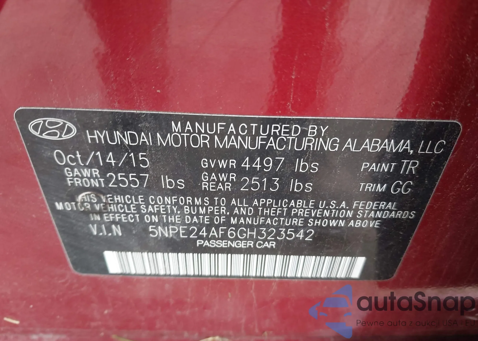 VIN: 5NPE24AF6GH323542