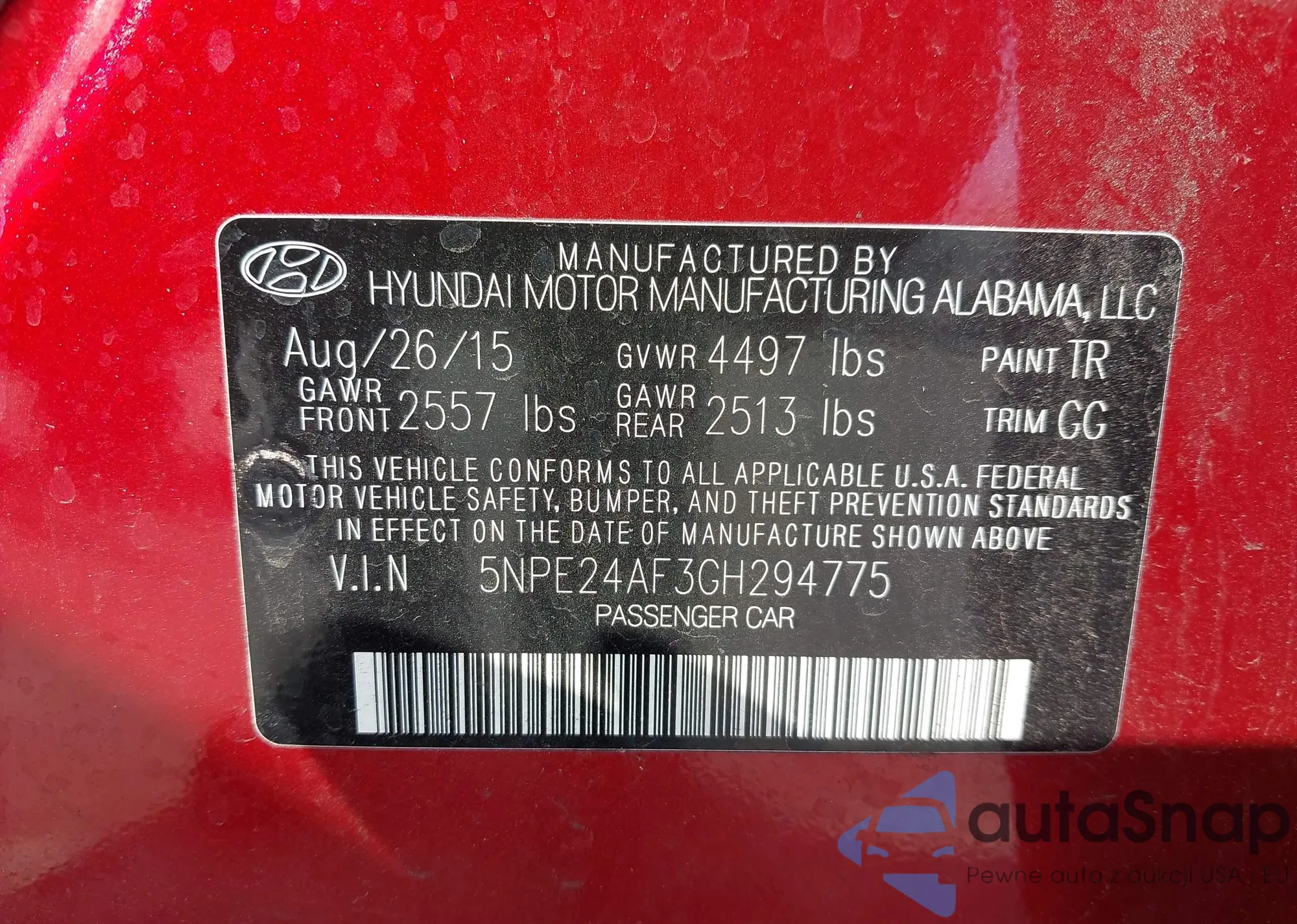 VIN: 5NPE24AF3GH294775