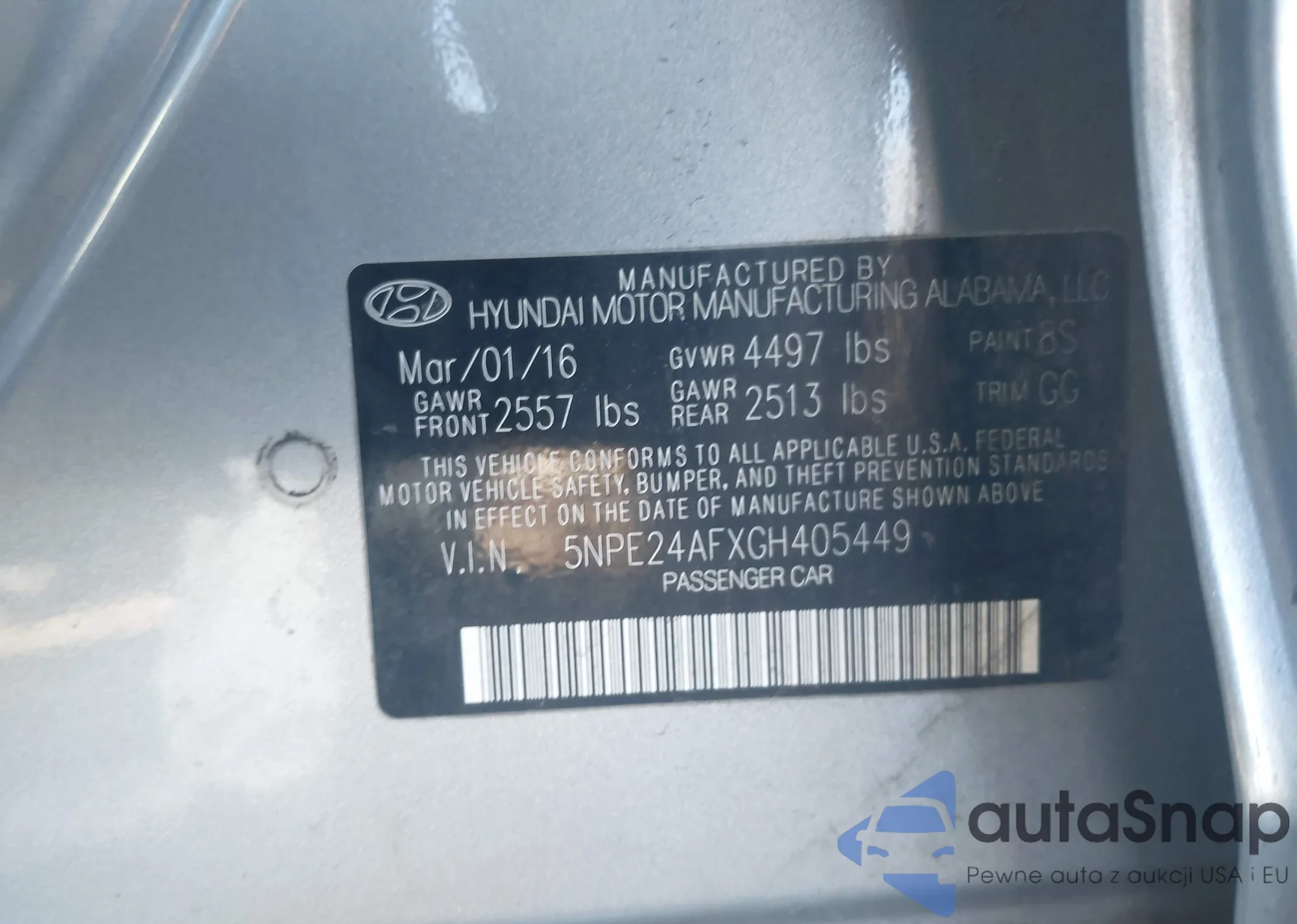• VIN: 5NPE24AFXGH405449