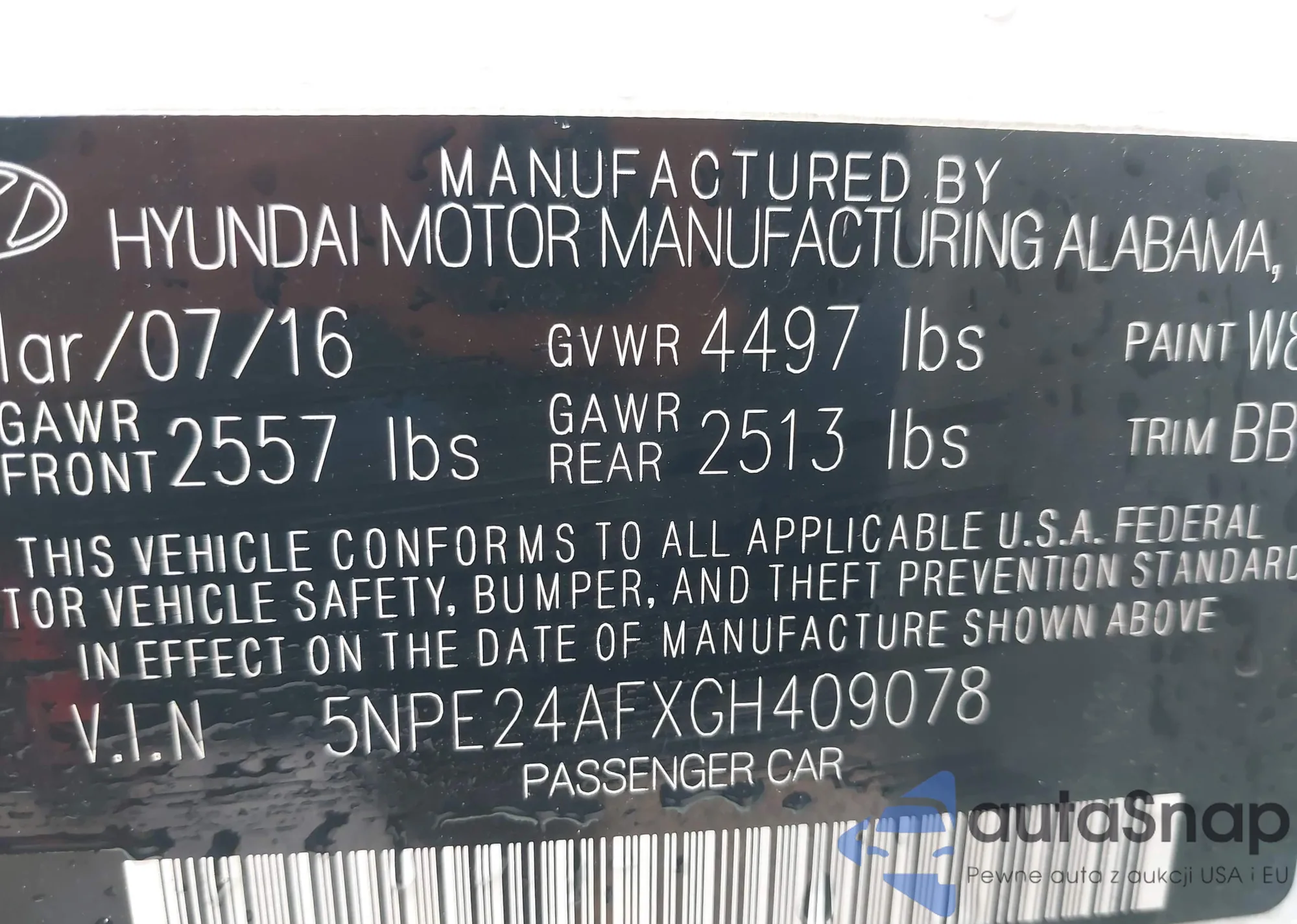 Samochód Hyundai Sonata 2016 (VIN 5NPE24AFXGH409078) nie był wcześniej licytowany. Dokumenty są czyste, przebieg odpowiada lub jest niższy niż średnia rynku. Sprzedaje go firma ubezpieczeniowa – polecamy zakup. Dostawa do portu zajmie ok. 6–8 tygodni.
