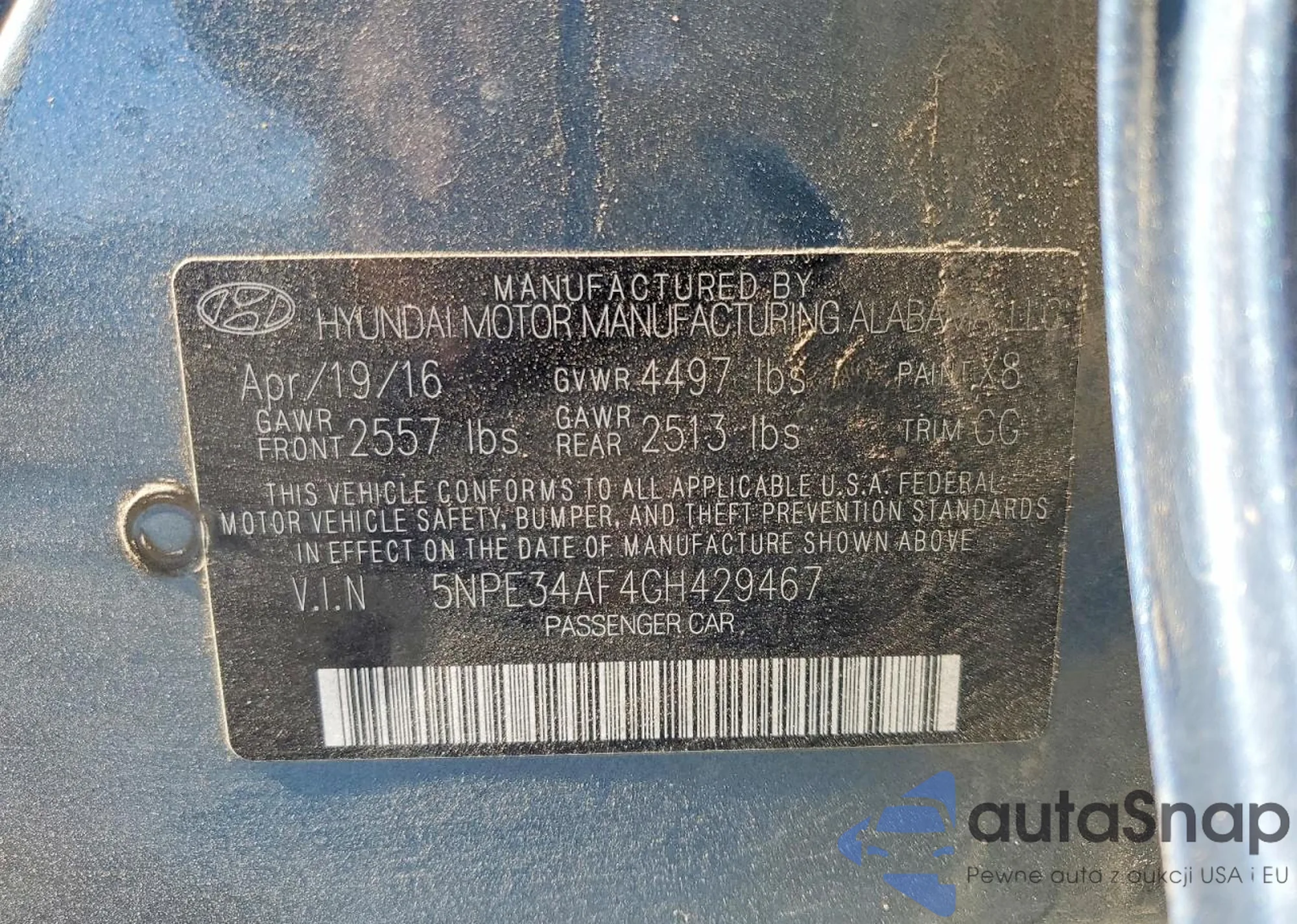 VIN: 5NPE34AF4GH429467