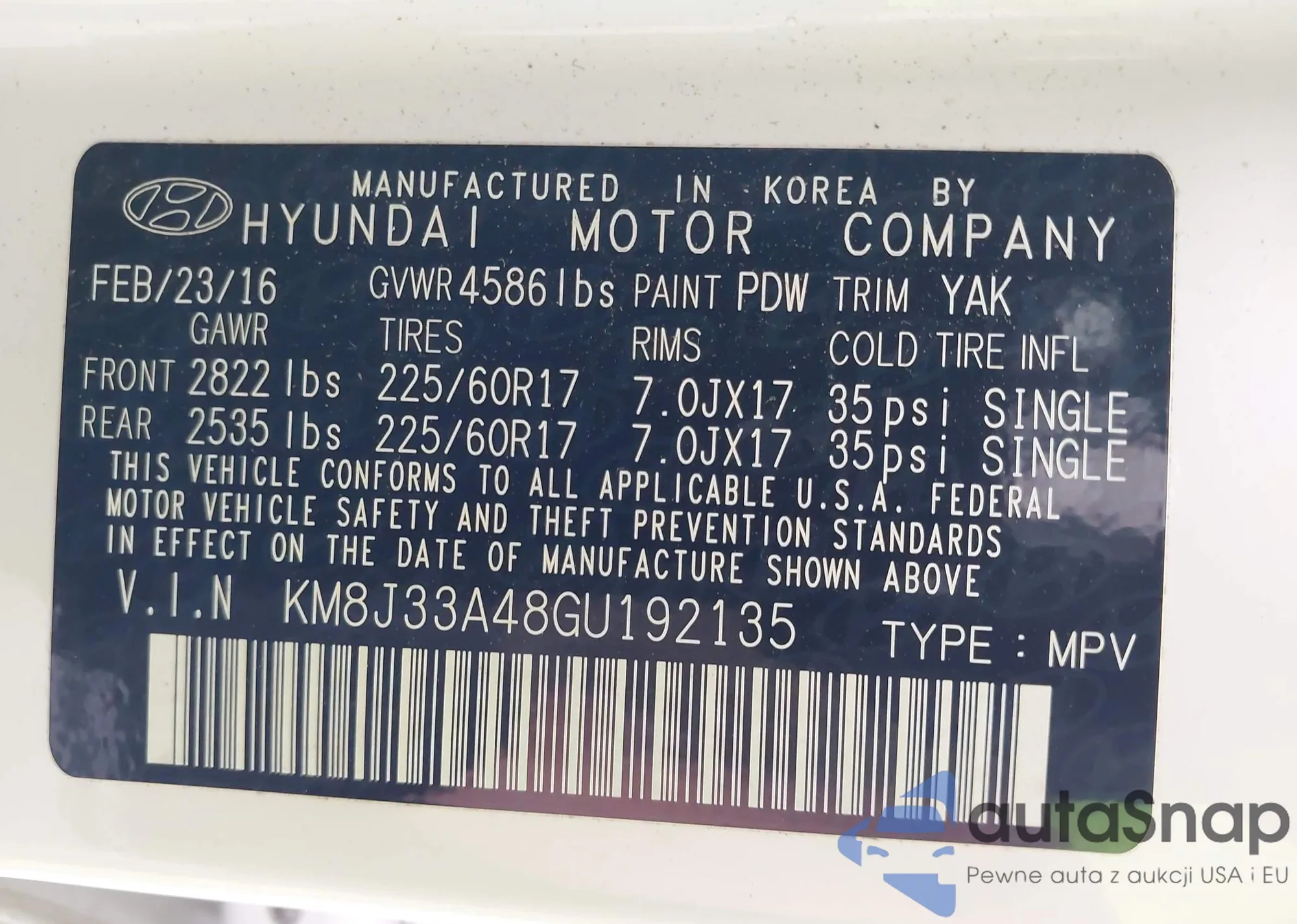 VIN: KM8J33A48GU192135