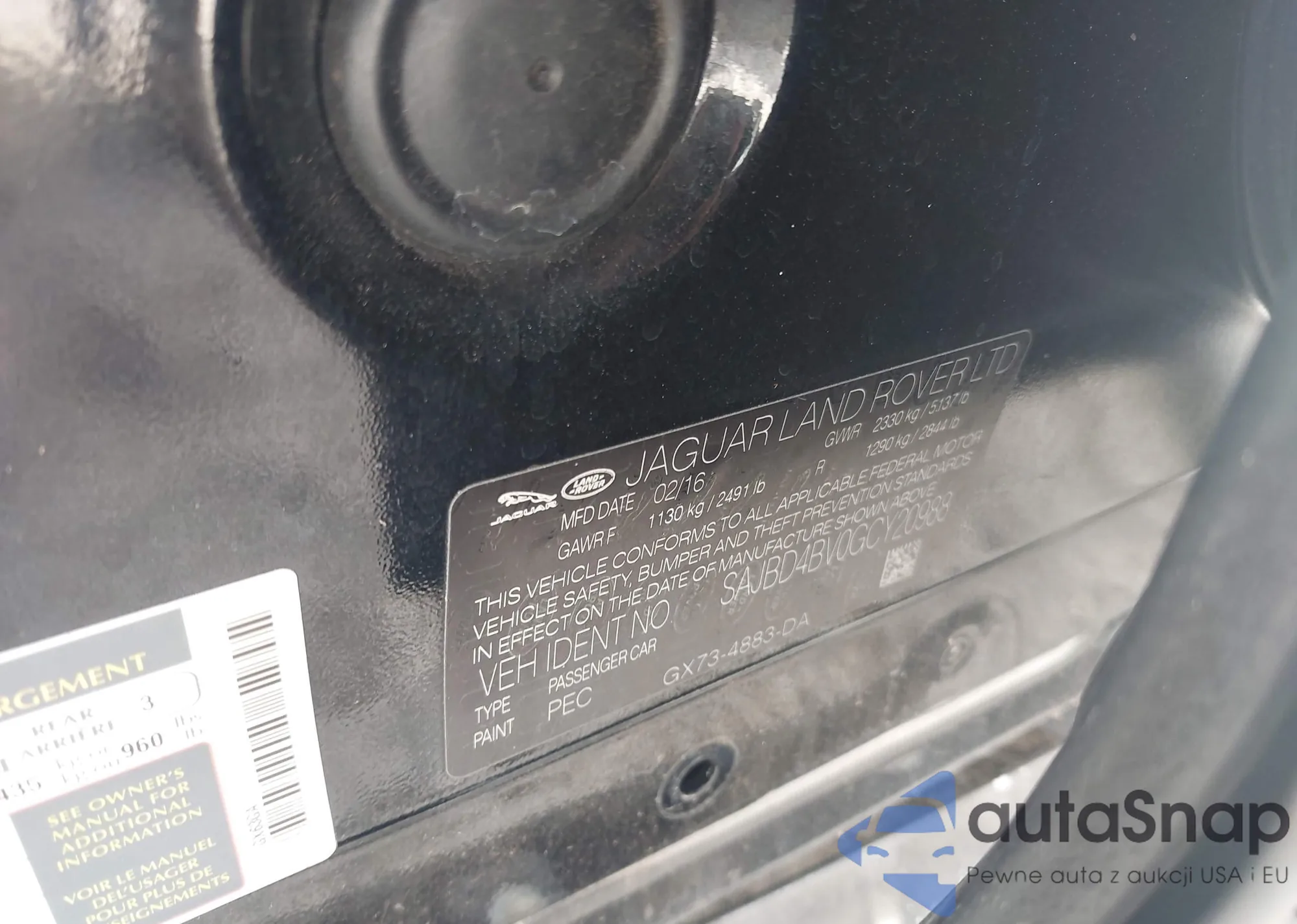 Samochód Jaguar XF 2016 (VIN SAJBD4BV0GCY20988) ma dokumenty uniemożliwiające rejestrację. Mogą pojawić się trudności przy eksporcie i rejestracji. Skontaktuj się z ekspertami AutaSnap w celu znalezienia alternatywy.