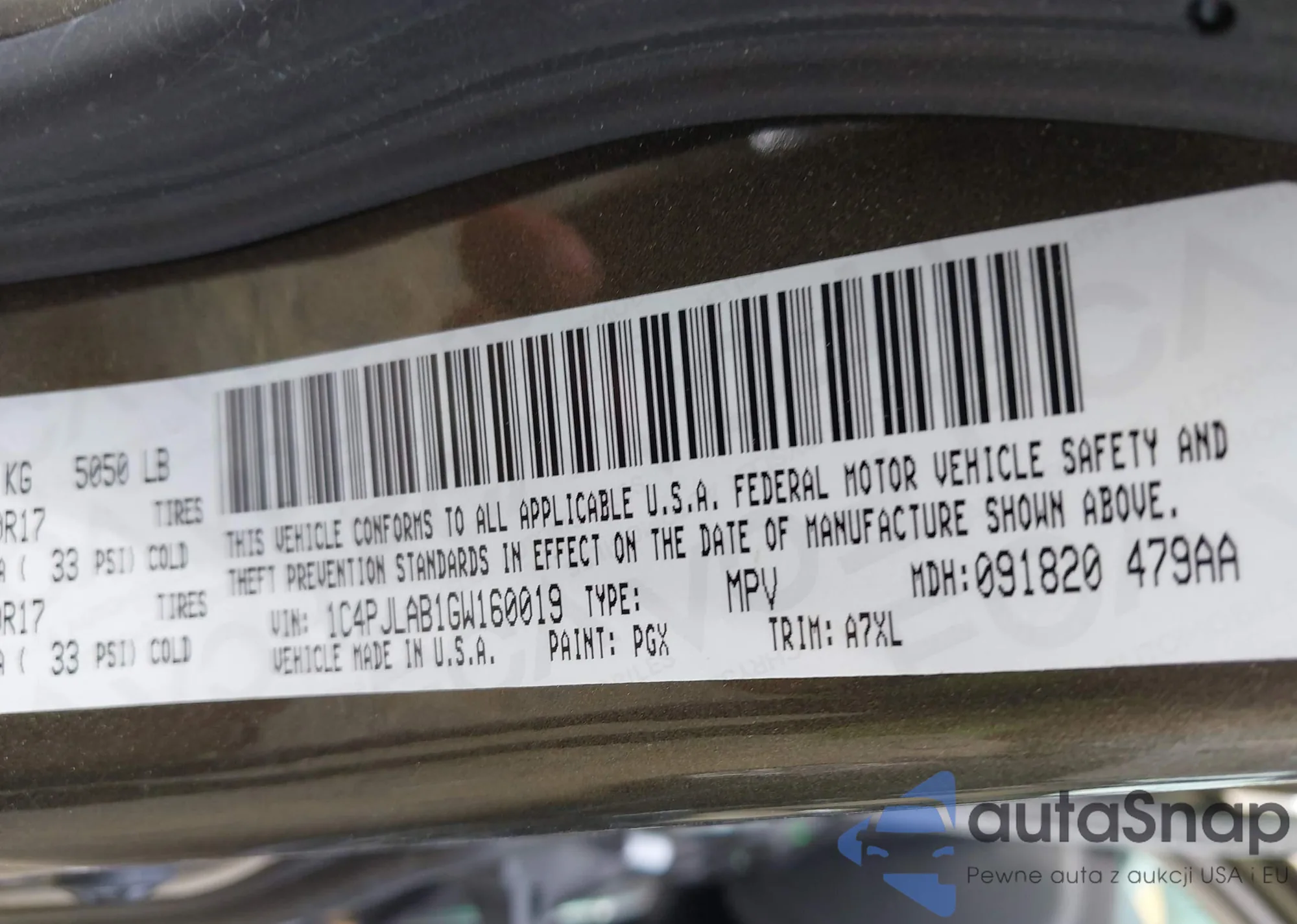 VIN: 1C4PJLAB1GW160019