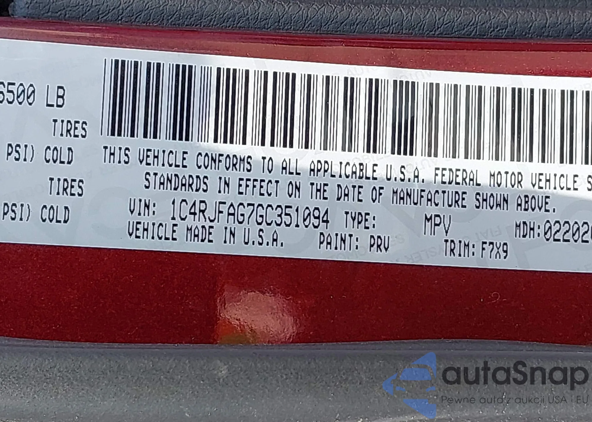 VIN: 1C4RJFAG7GC351094