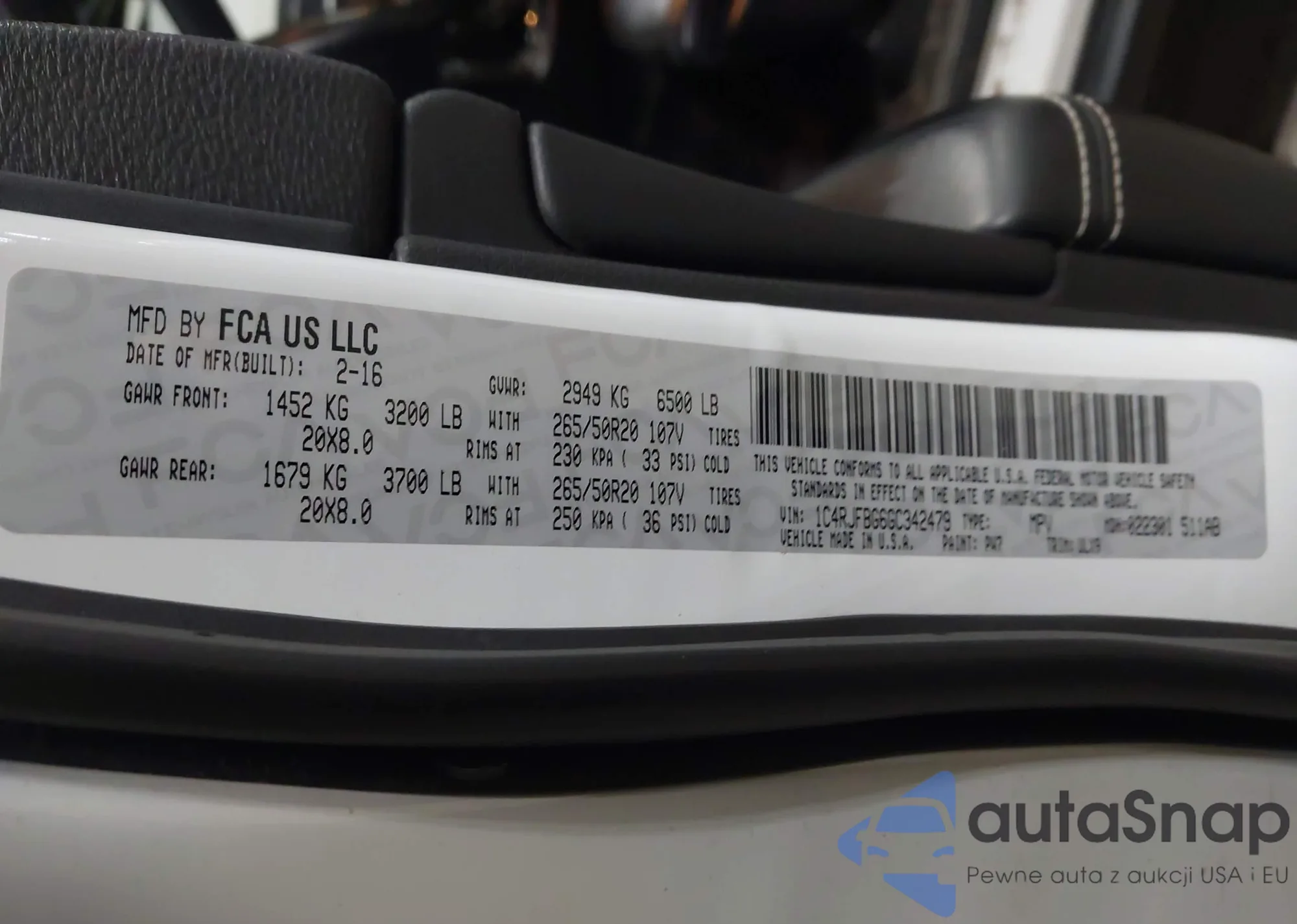 Samochód Jeep Grand Cherokee 2016 (VIN 1C4RJFBG6GC342479) sprzedaje go niezweryfikowany sprzedawca. Zalecamy raport Carfax i potwierdzenie możliwości rejestracji pojazdu przed zakupem.