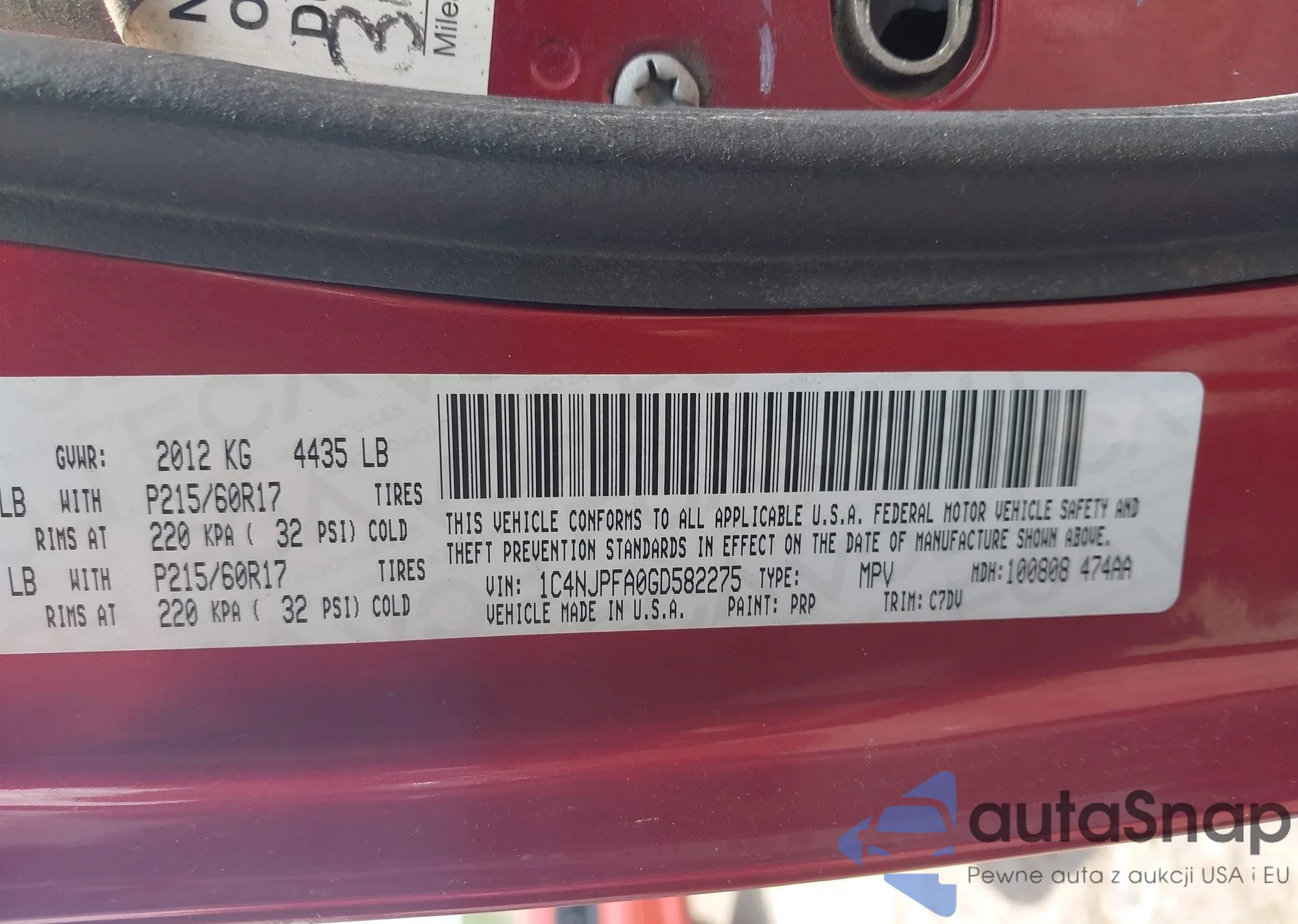 • VIN: 1C4NJPFA0GD582275