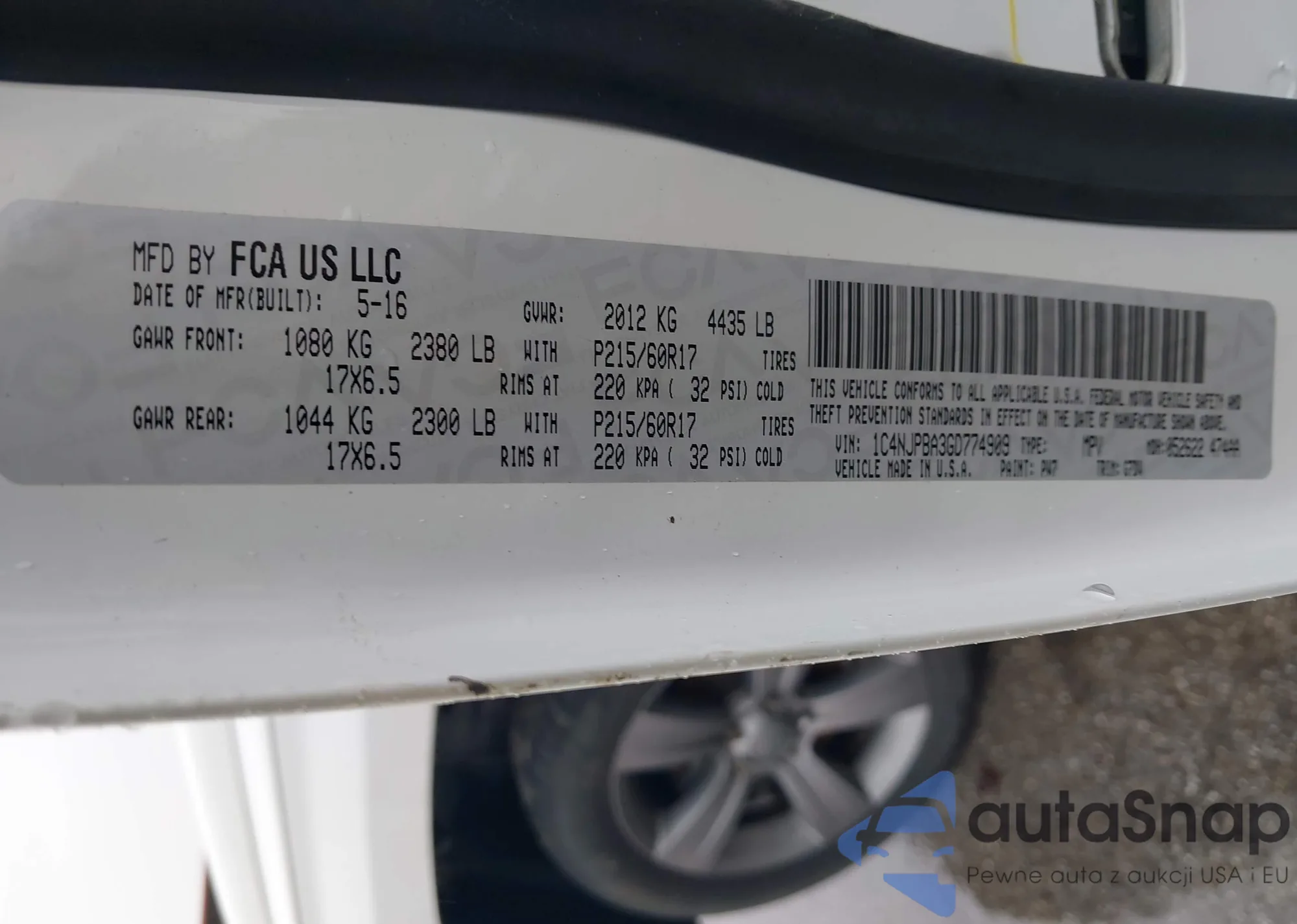 Samochód Jeep Liberty (Patriot) 2016 (VIN 1C4NJPBA3GD774909) sprzedaje go niezweryfikowany sprzedawca. Zalecamy raport Carfax i potwierdzenie możliwości rejestracji pojazdu przed zakupem.