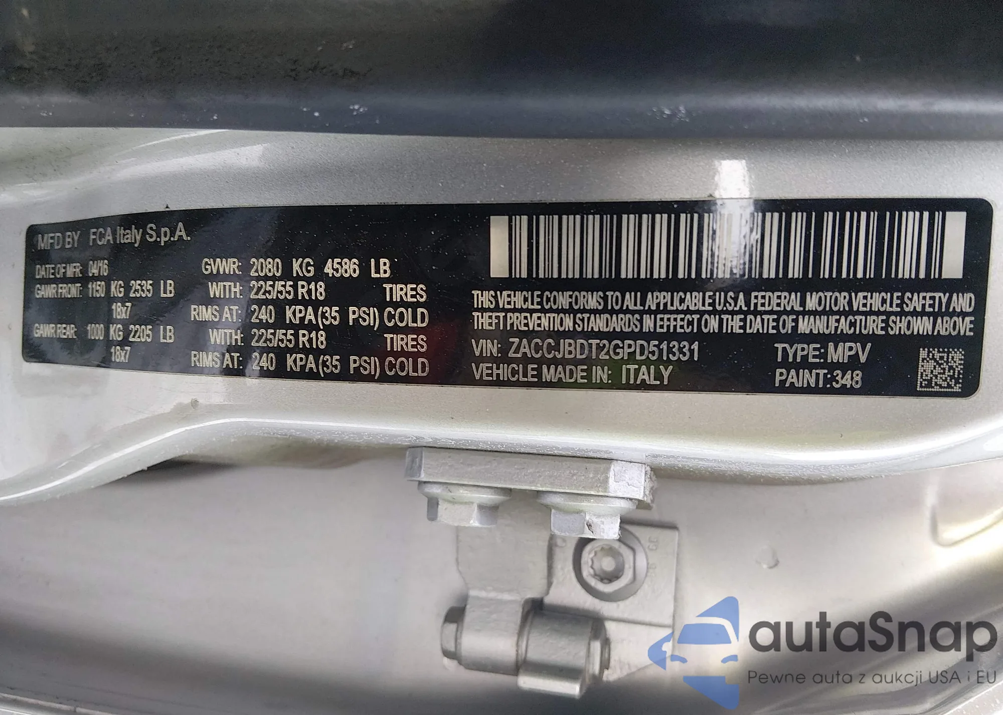 Samochód Jeep Renegade 2016 (VIN ZACCJBDT2GPD51331) nie był wcześniej licytowany. Dokumenty są czyste, przebieg odpowiada lub jest niższy niż średnia rynku. Sprzedaje go firma ubezpieczeniowa – polecamy zakup. Dostawa do portu zajmie ok. 6–8 tygodni.