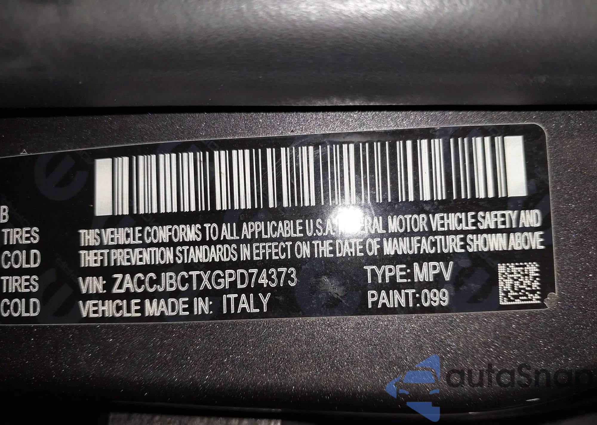 VIN: ZACCJBCTXGPD74373