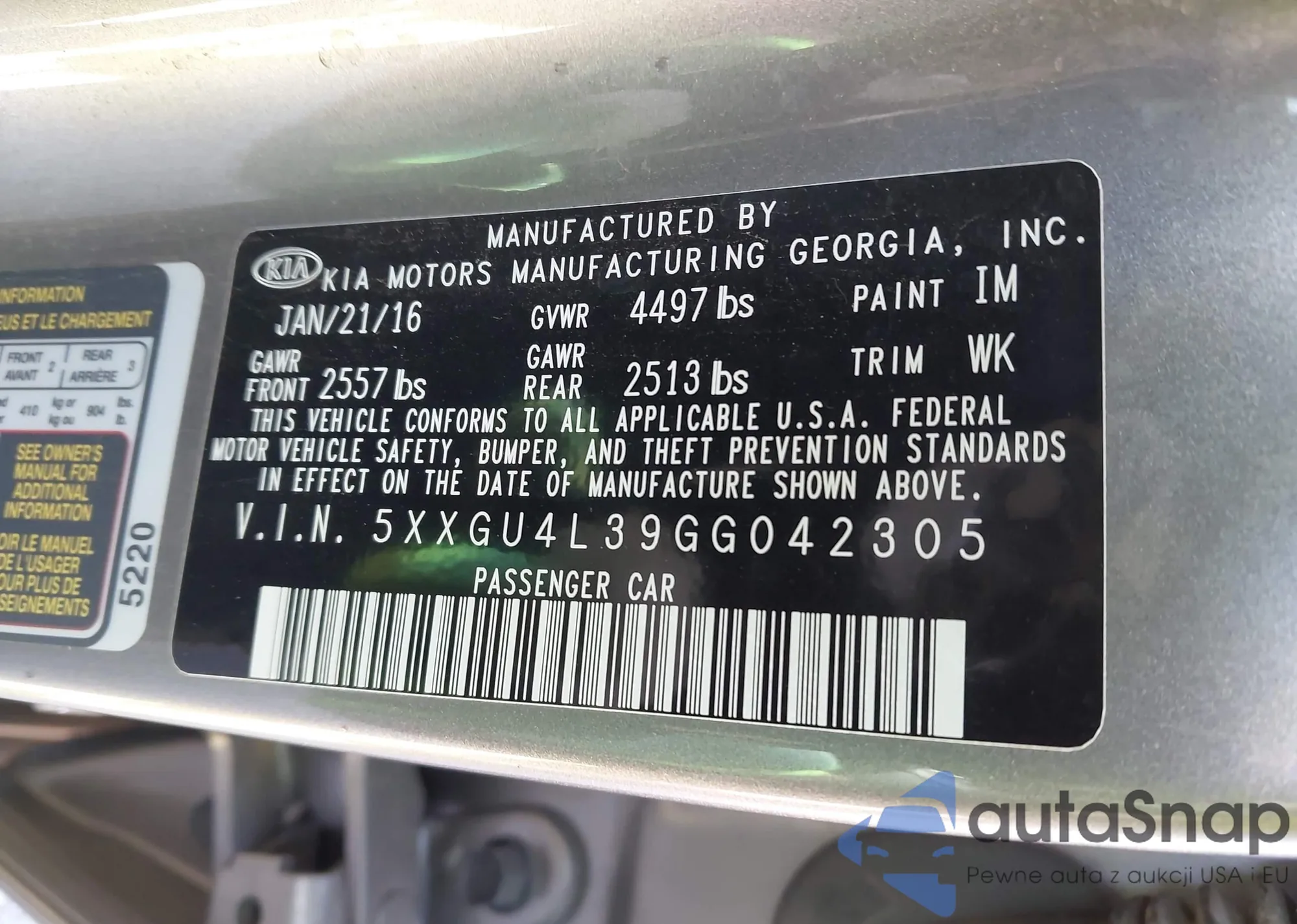 VIN: 5XXGU4L39GG042305