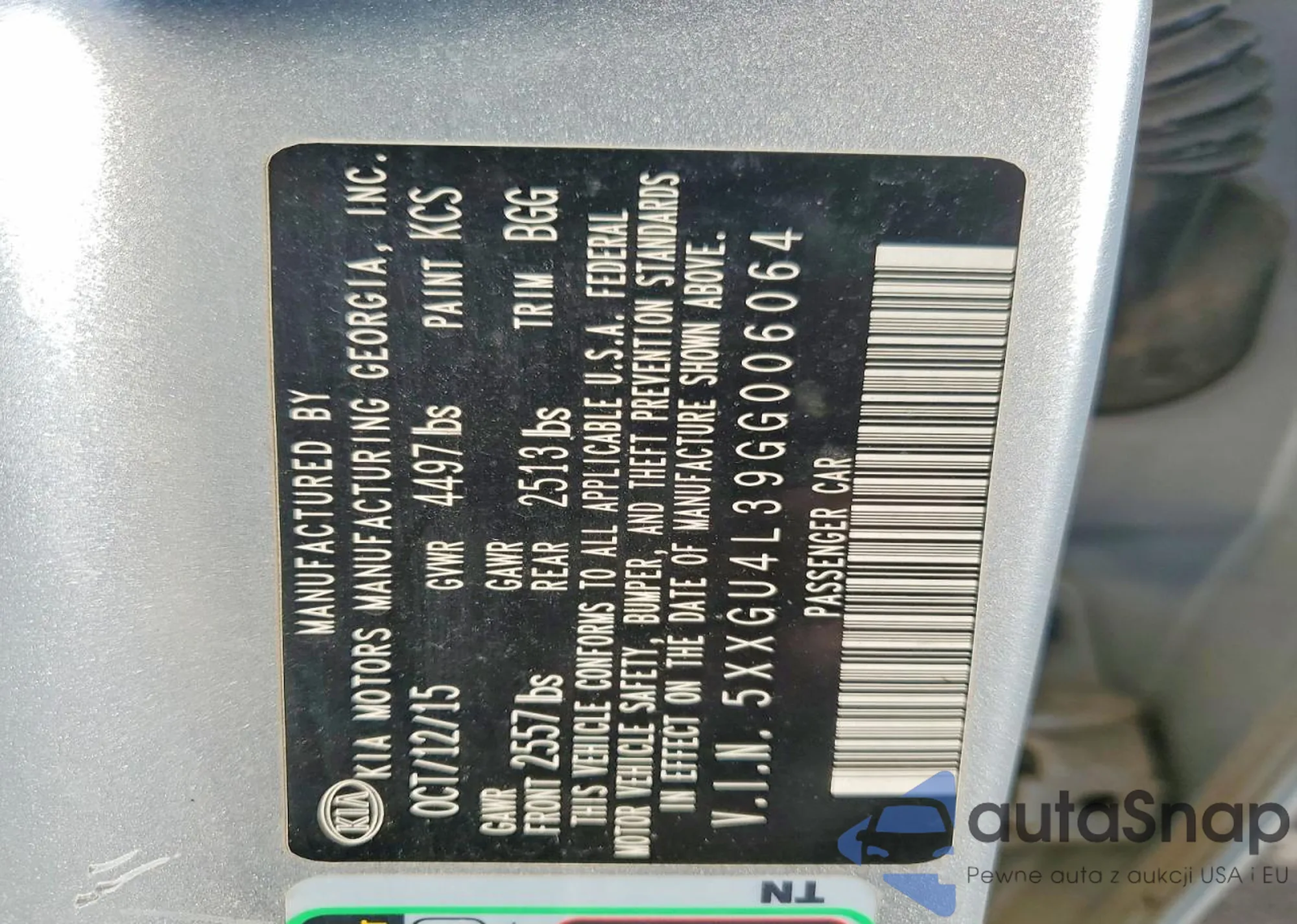 Samochód Kia Optima 2016 (VIN 5XXGU4L39GG006064) nie był wcześniej licytowany. Dokumenty są czyste, przebieg odpowiada lub jest niższy niż średnia rynku. Sprzedaje go firma ubezpieczeniowa – polecamy zakup. Dostawa do portu zajmie ok. 6–8 tygodni.