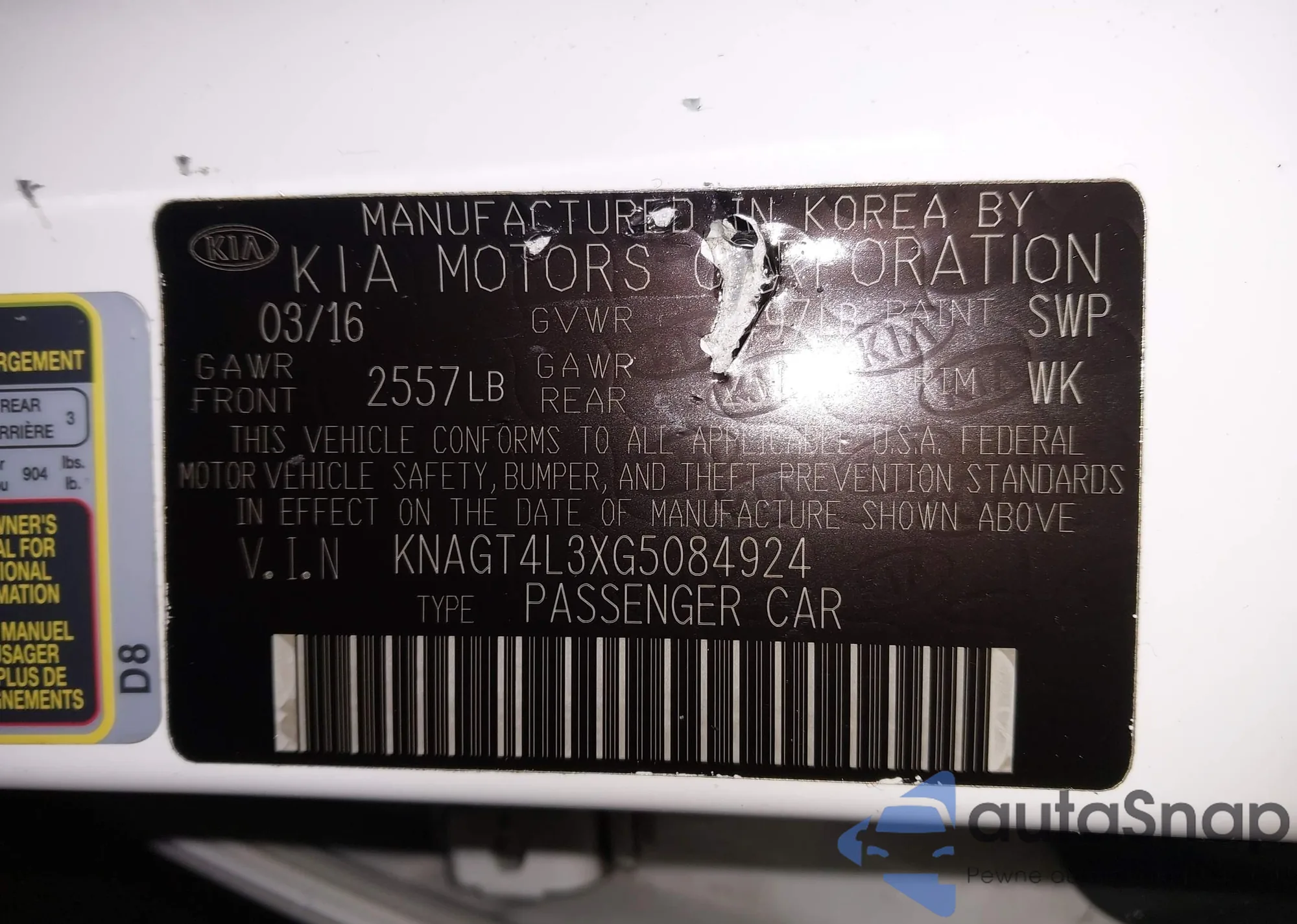 Samochód Kia Optima 2016 (VIN KNAGT4L3XG5084924) był już licytowany 1 razy i/lub sprzedaje go niezweryfikowany sprzedawca. Zalecamy raport Carfax i potwierdzenie możliwości rejestracji pojazdu przed zakupem.