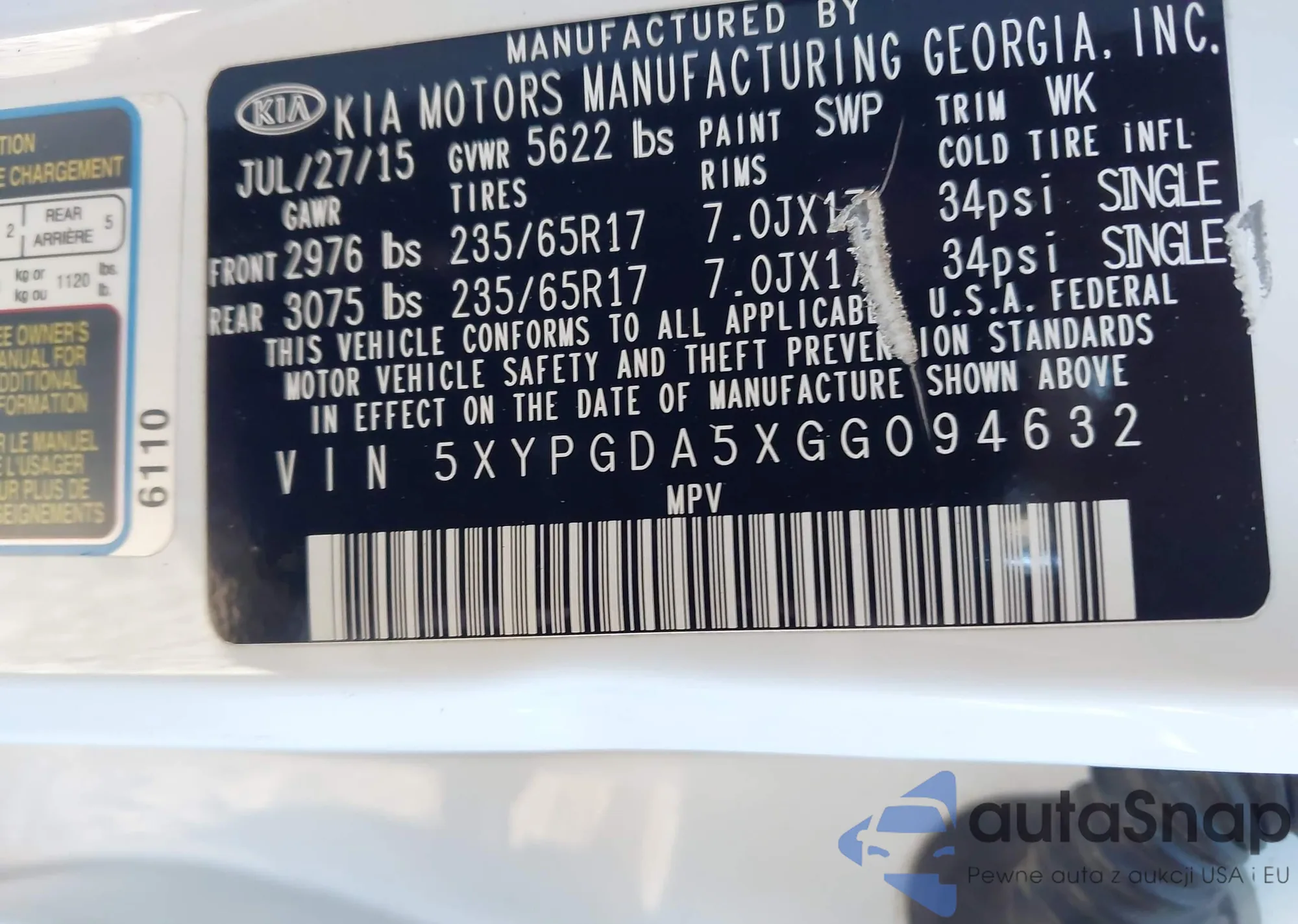 Samochód Kia Sorento 2016 (VIN 5XYPGDA5XGG094632) nie był wcześniej licytowany. Dokumenty są czyste, przebieg odpowiada lub jest niższy niż średnia rynku. Sprzedaje go firma ubezpieczeniowa – polecamy zakup. Dostawa do portu zajmie ok. 6–8 tygodni.
