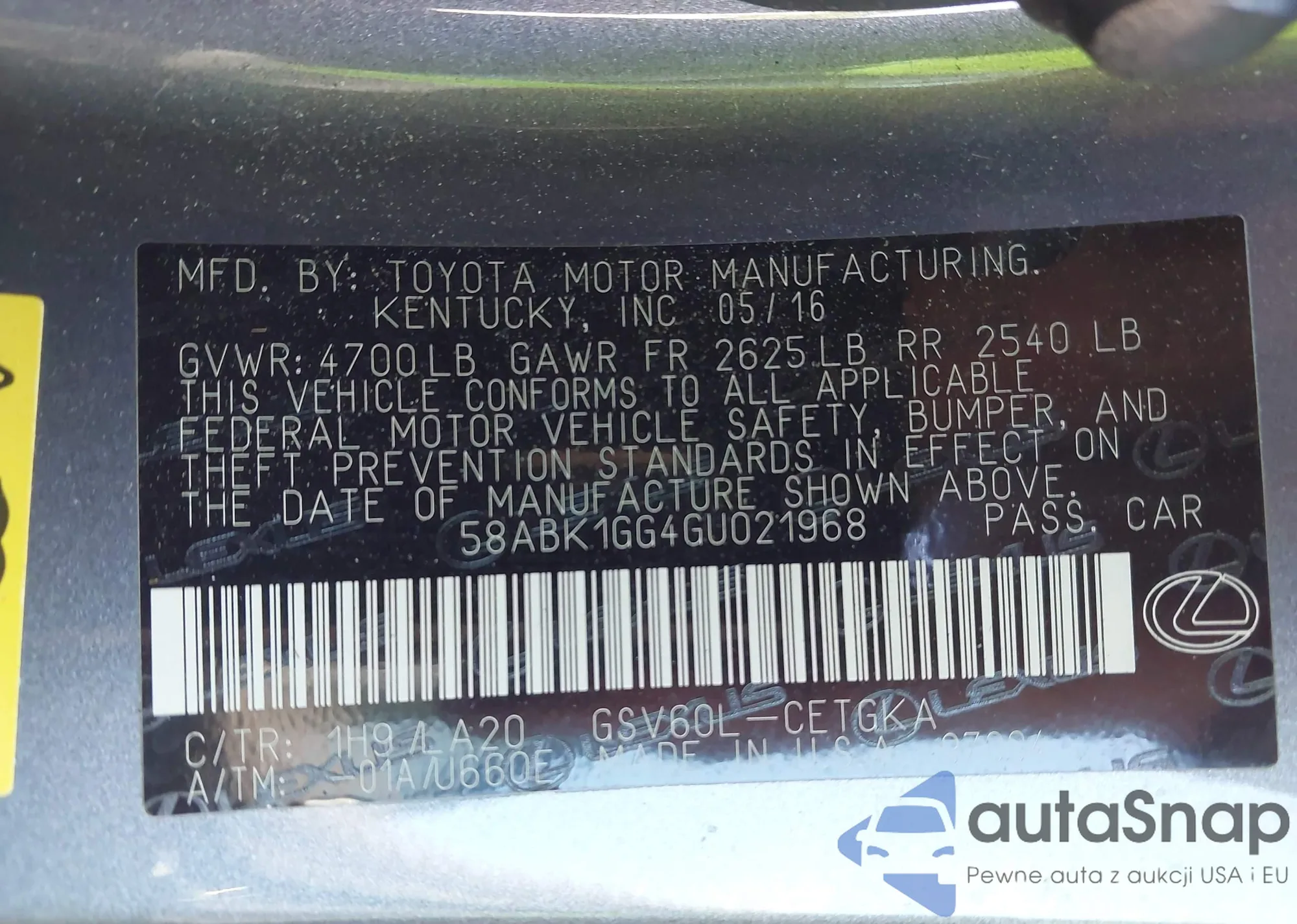 VIN: 58ABK1GG4GU021968