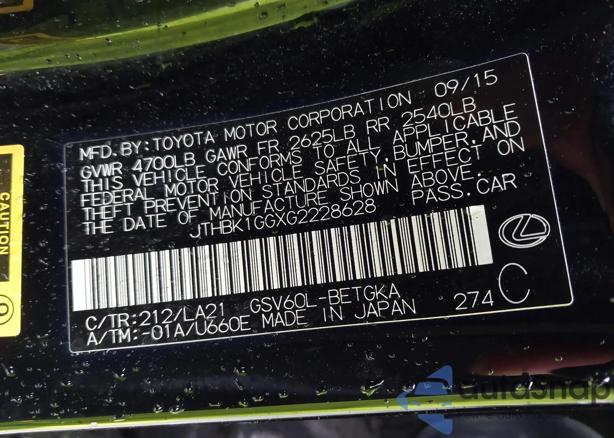 VIN: JTHBK1GGXG2228628